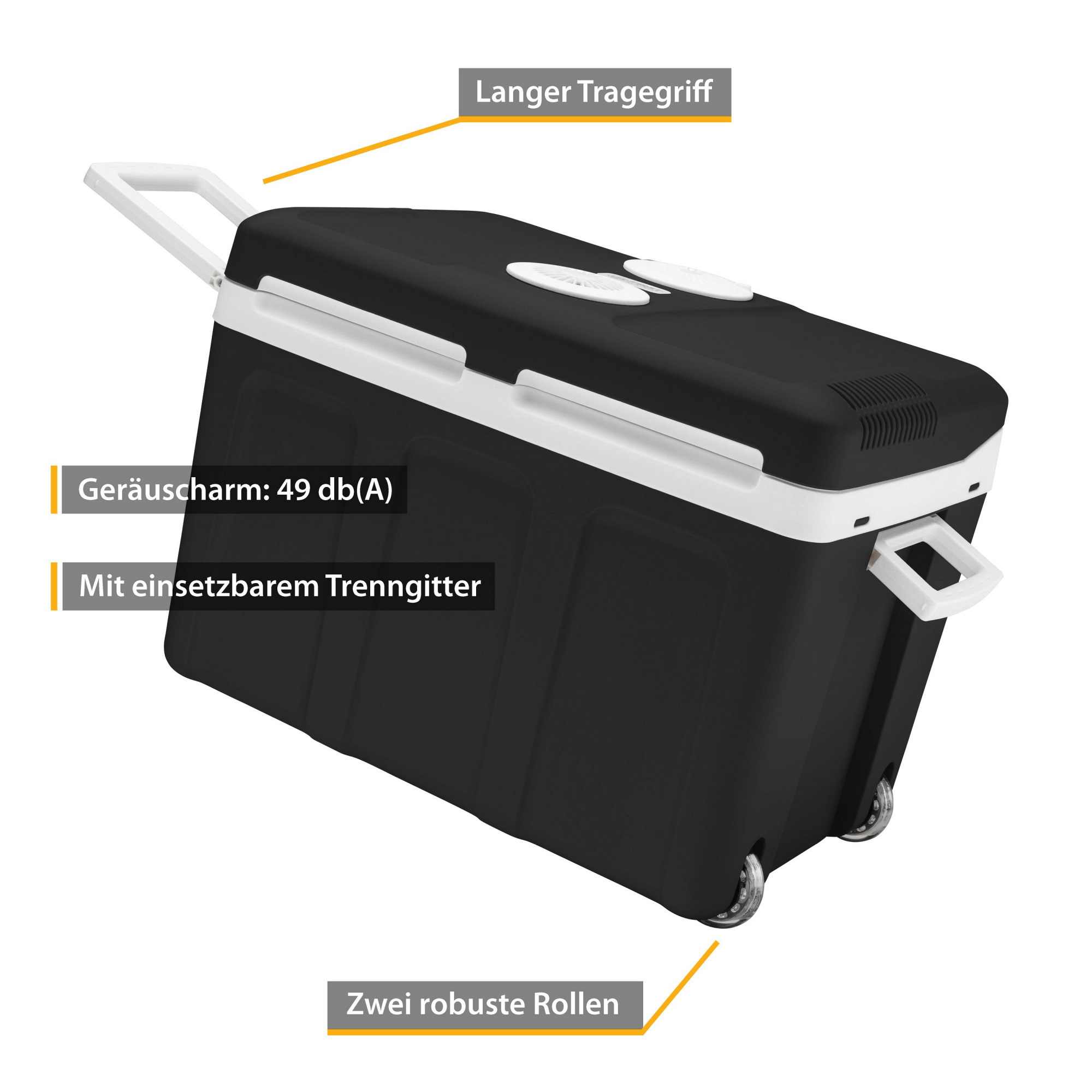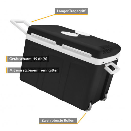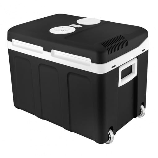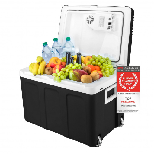 Охлаждайте или поддерживайте тепло – электрический климат может. Охлаждает до 18°С ниже окружающей температуры и обеспечивает постоянное тепло до 65°. В 40-литровом объеме достаточно много места для десятков бутылок, банок, термосных колб и закусок. Решетка разделения помогает избежать сваливания продуктов в одну кучу. Закрывающийся отсек для хранения сетевого шнура, колеса для транспортировки, прочные ручки для переноски позволяют несложную транспортировку даже при полной загрузке. Можно пользоваться в автомобиле с 12-вольтовым гнездом прикуривателя или напряжением от сети 220-240 V.