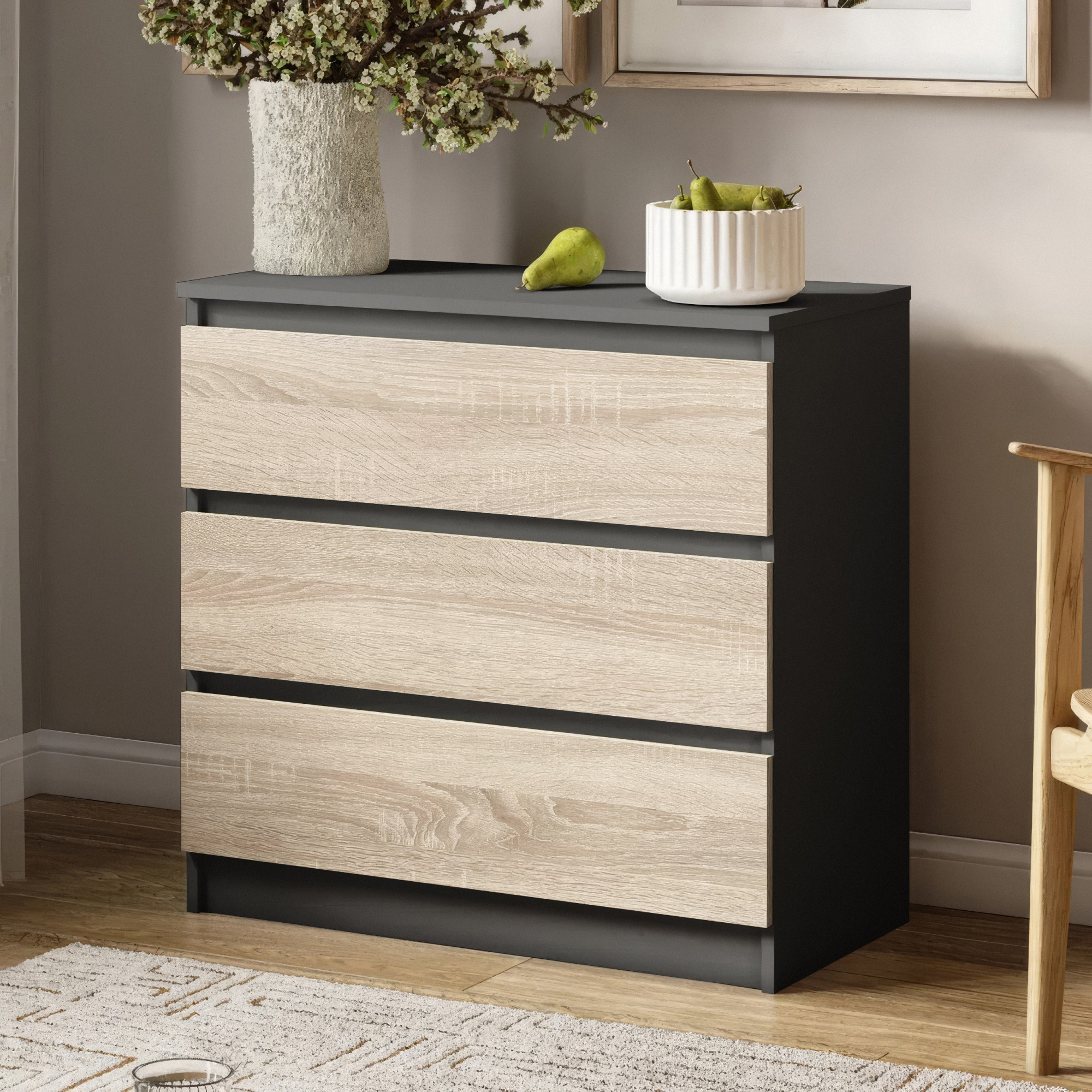Комод на 3 ящика без ручек FT-214 800х400х755 мм Антрацит-Дуб Сонома (25195283)