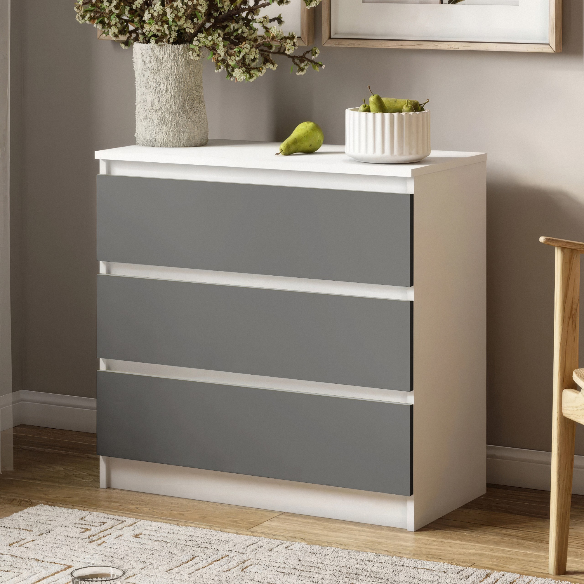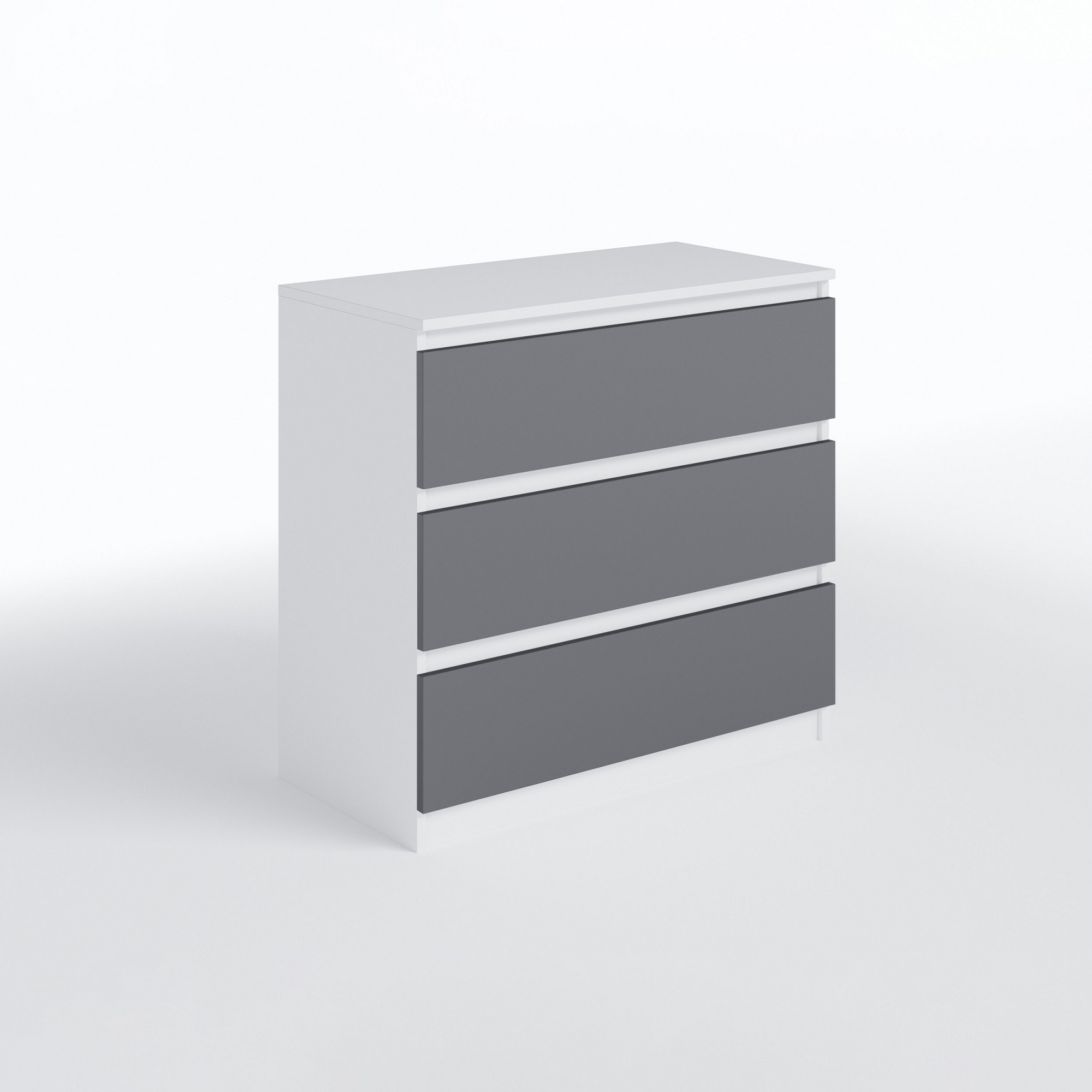 Комод на 3 ящика без ручек FT-214 800х400х755 мм Белый, Нимфея Альба-Антрацит (8886634)