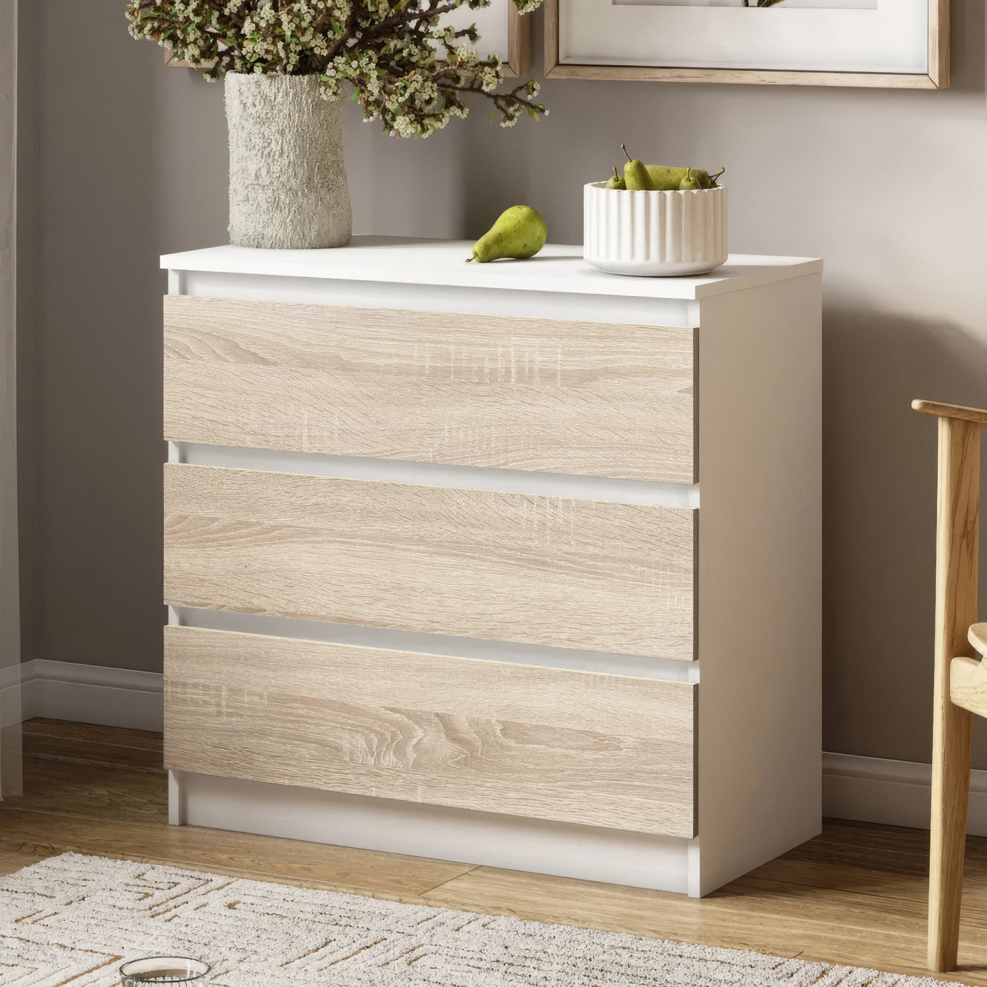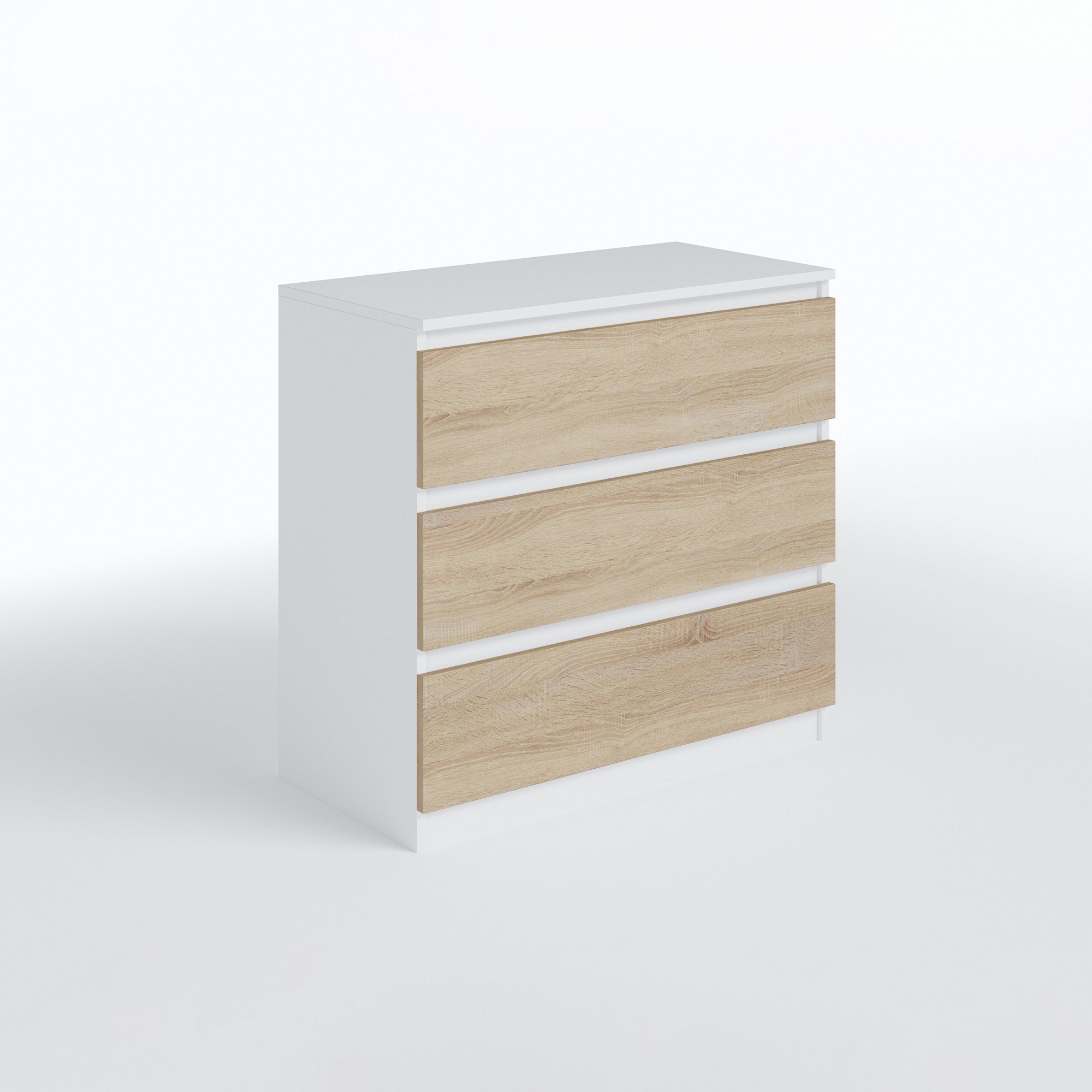 Комод на 3 ящика без ручек FT-214 800х400х755 мм Белый, Нимфея Альба-Дуб Сонома (8885861)