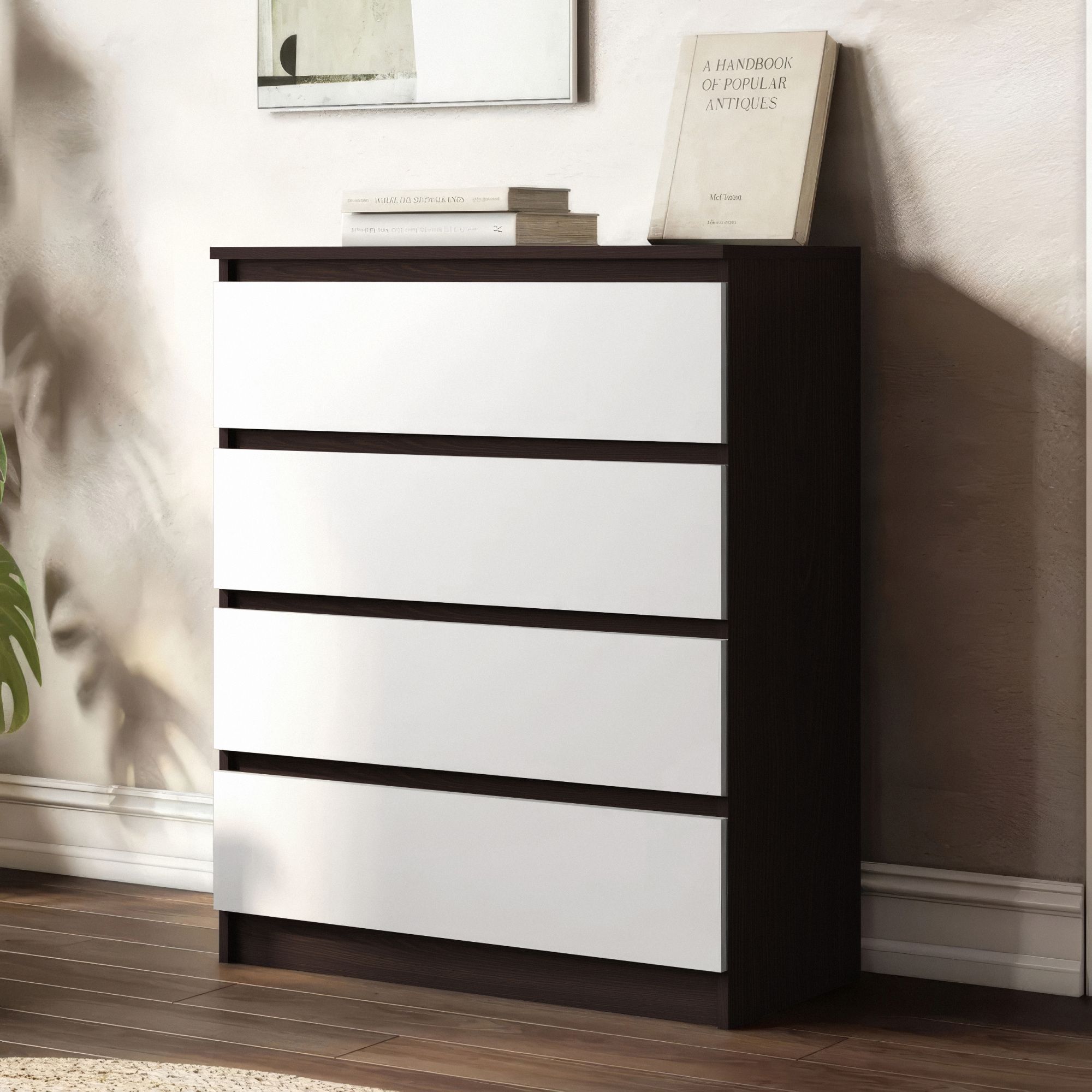 Комод на 4 ящика без ручек NT-215 800х400х1000 мм Венге Магия-Белый, Нимфея Альба (13864487)
