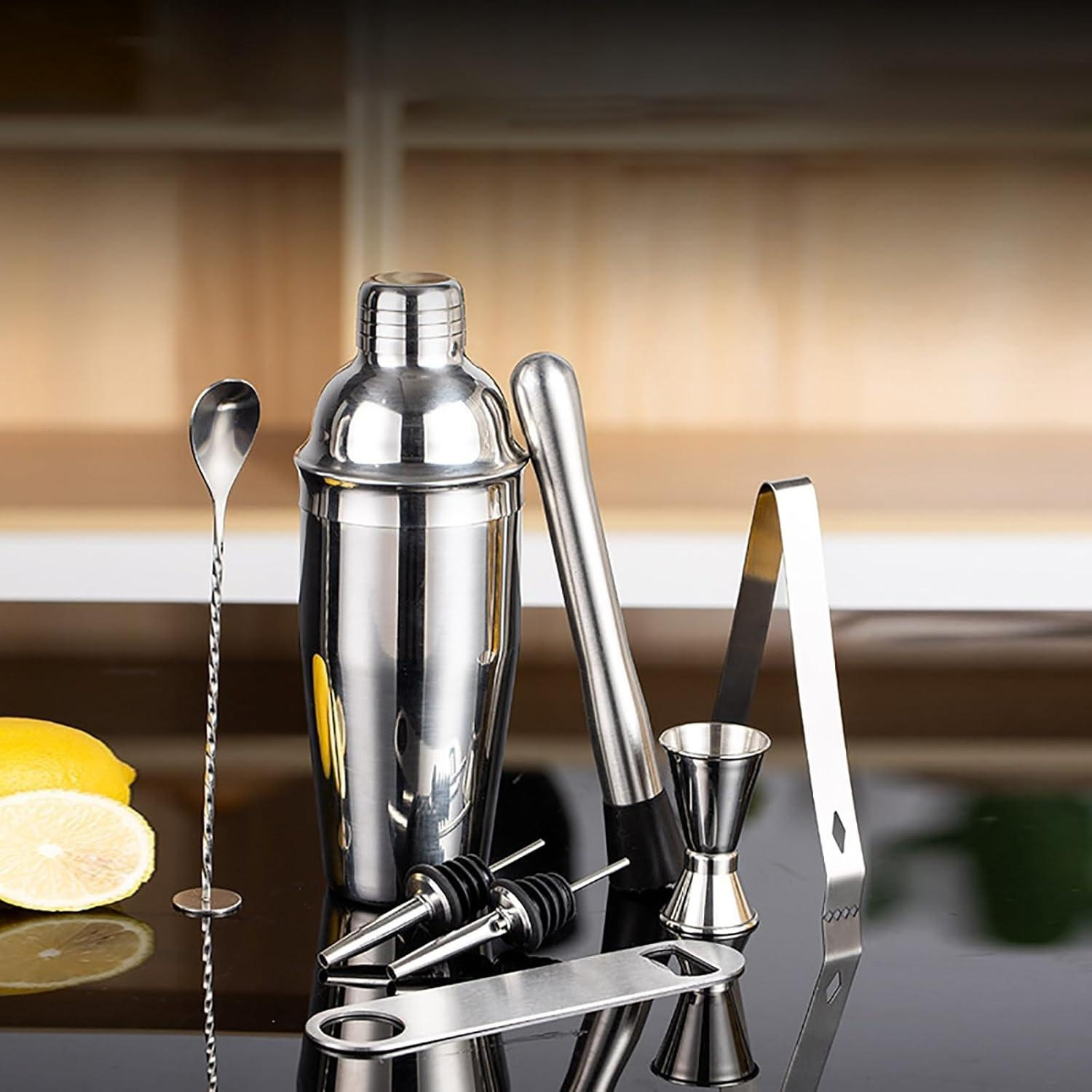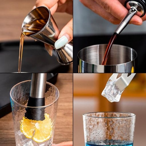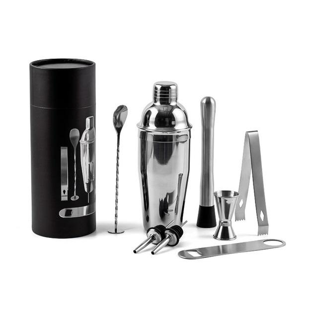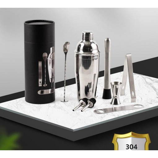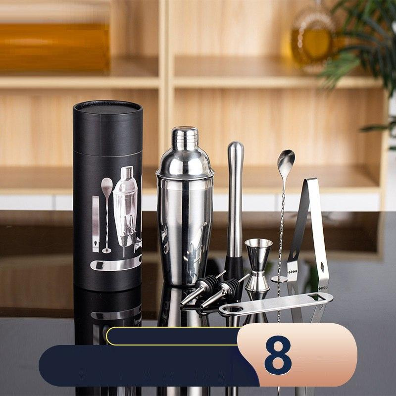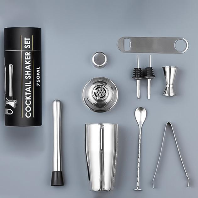 Набор для бара 8 в 1 для приготовления коктейлей в футляре изготовлен из высококачественной нержавеющей стали.