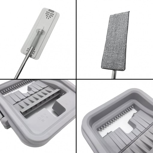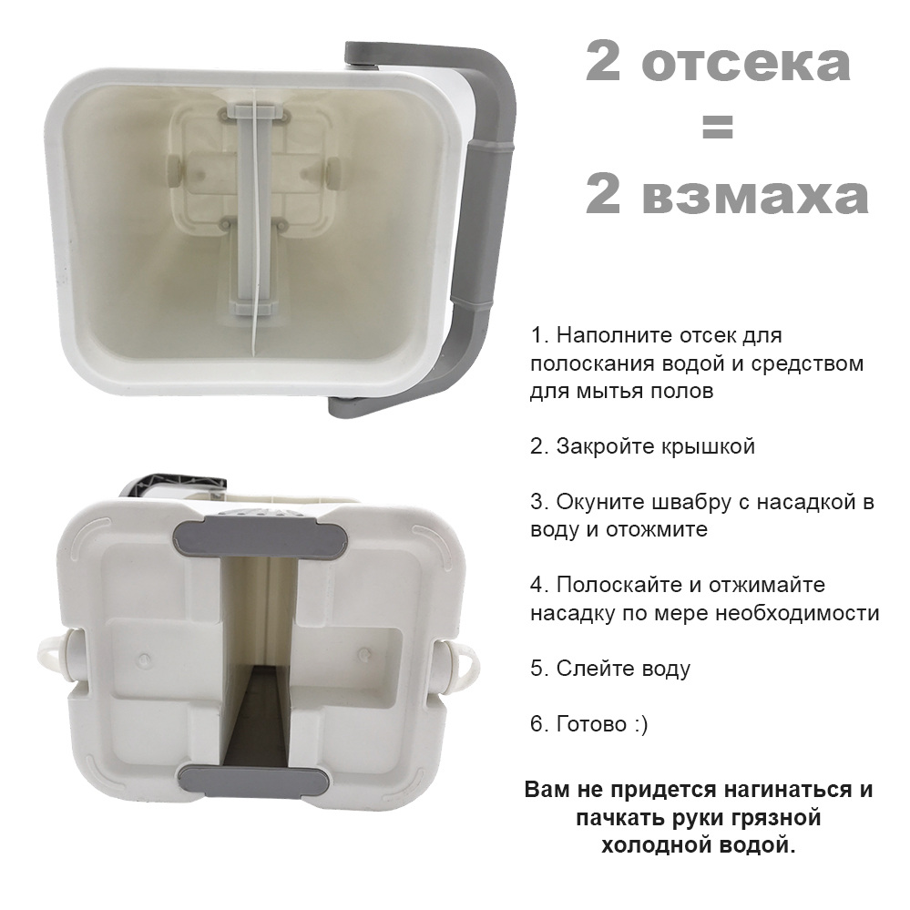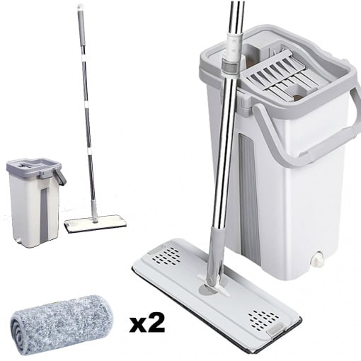 Комплект для уборки пола Cleaning Kit представляет собой комбинацию швабры из микрофибры и ведра с механической системой отжима. В комплект входит: ведро с механической системой отжима и плоская швабра.