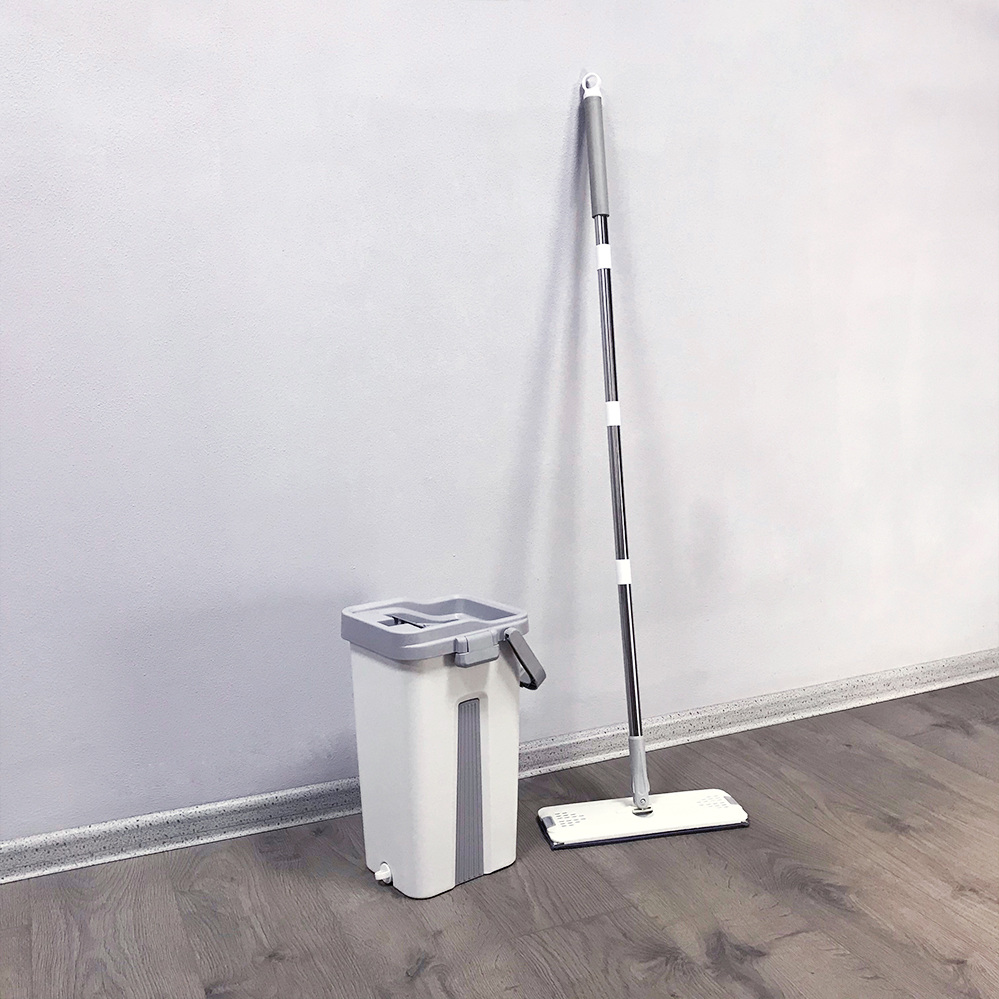 Комплект для уборки швабра "Лентяйка" с ведром Cleaning Kit автоматический отжим и складная ручка Белый