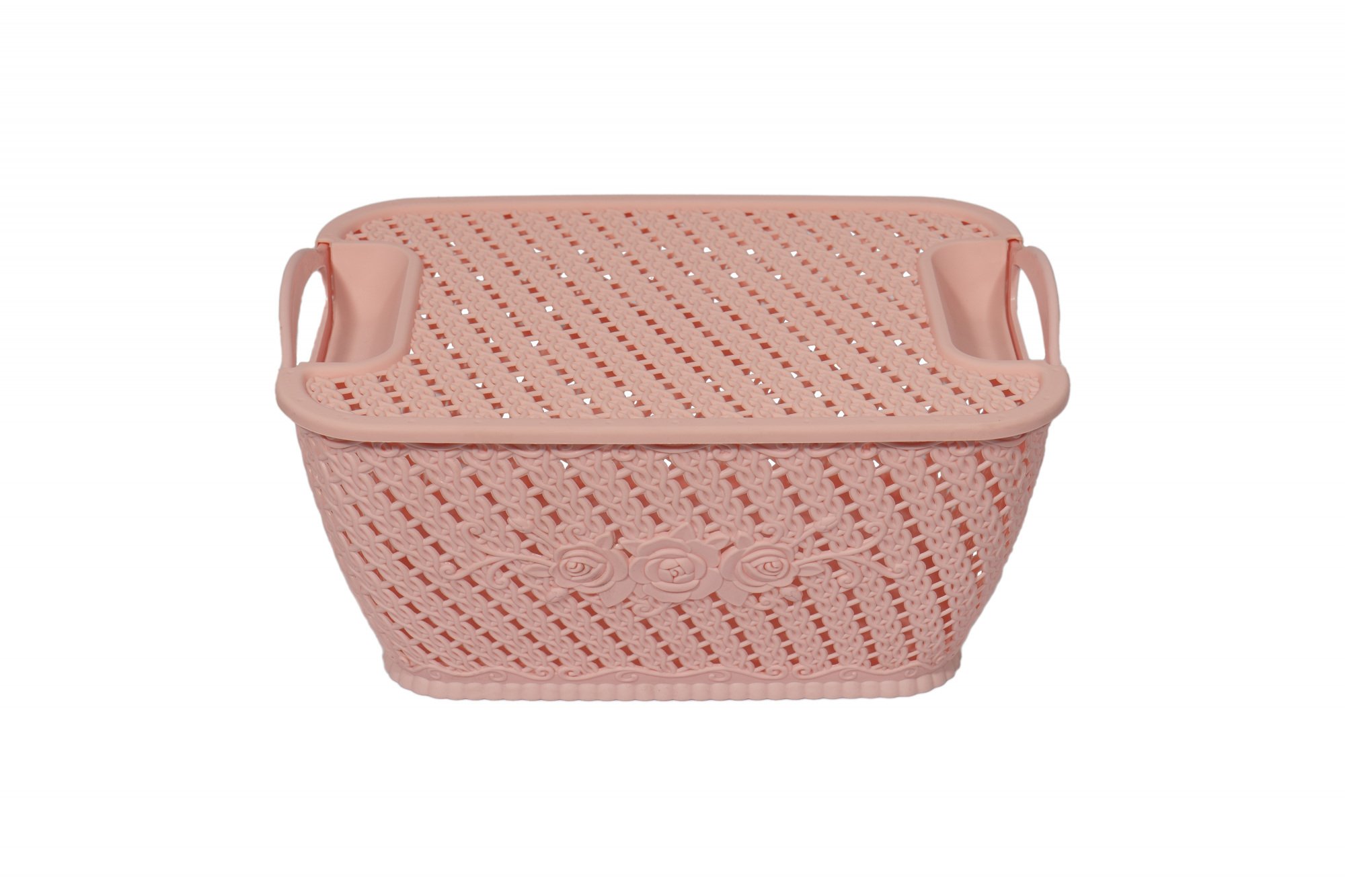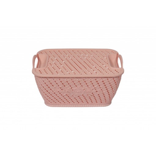 Корзина для хранения С крышкой И ручками Большая Kornel Розовая