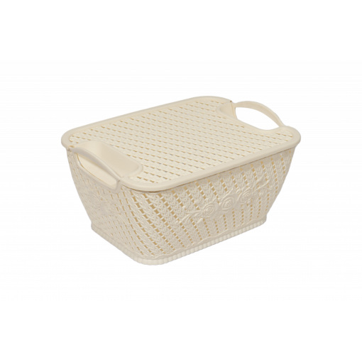 Корзина для хранения с крышкой и ручками Kornel Бежевая 26х37 см