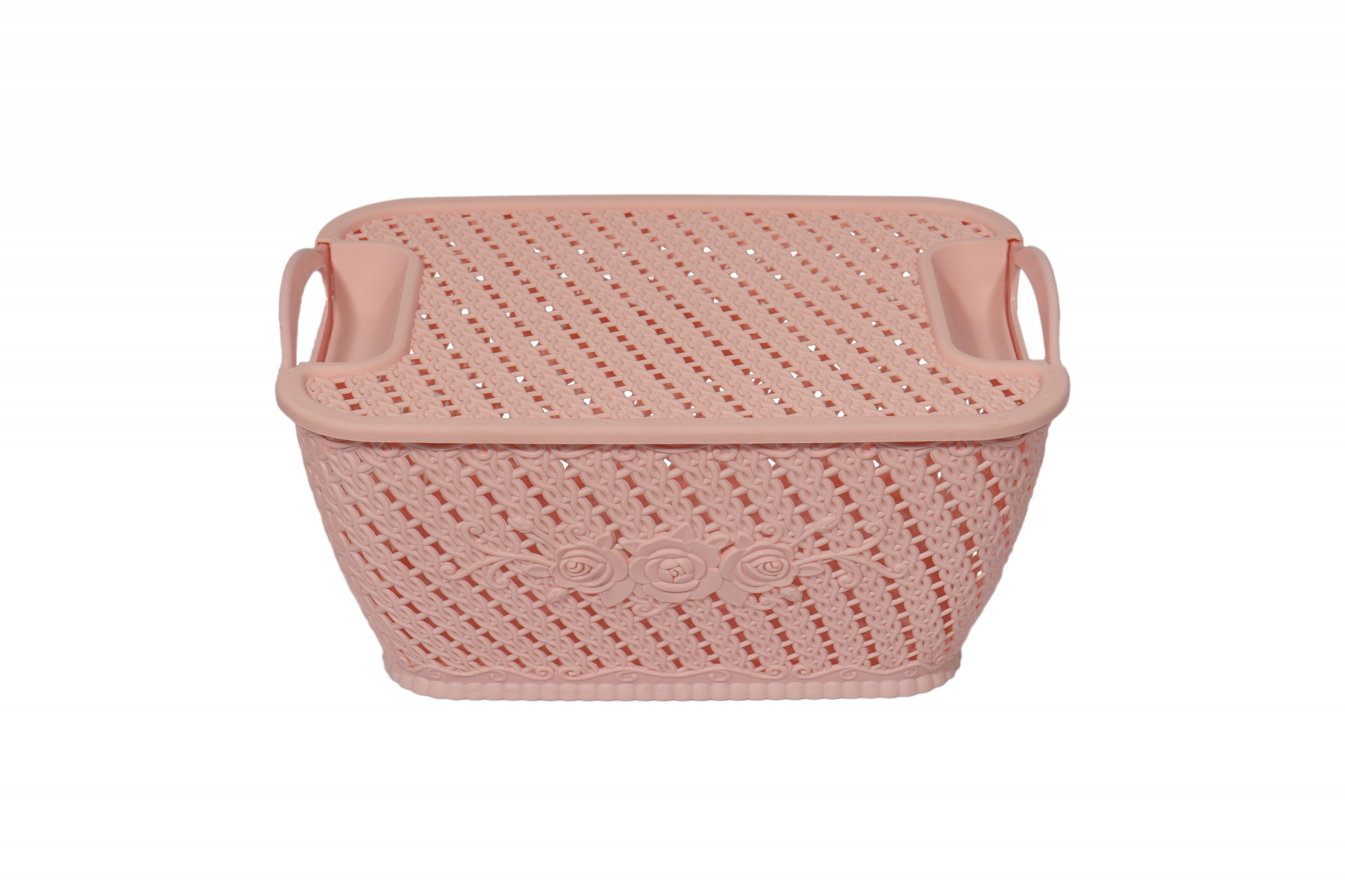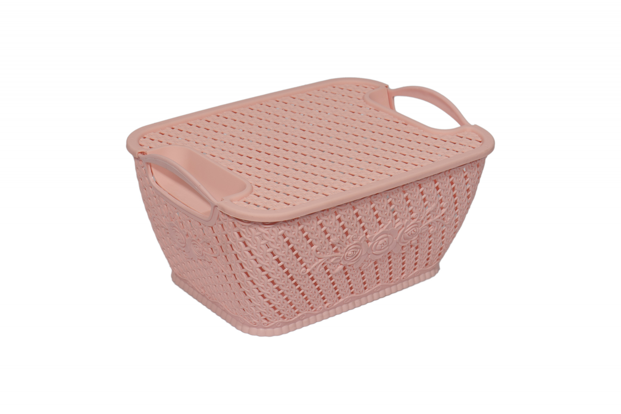 Корзина для хранения С крышкой И ручками Маленькая Kornel  Розовая