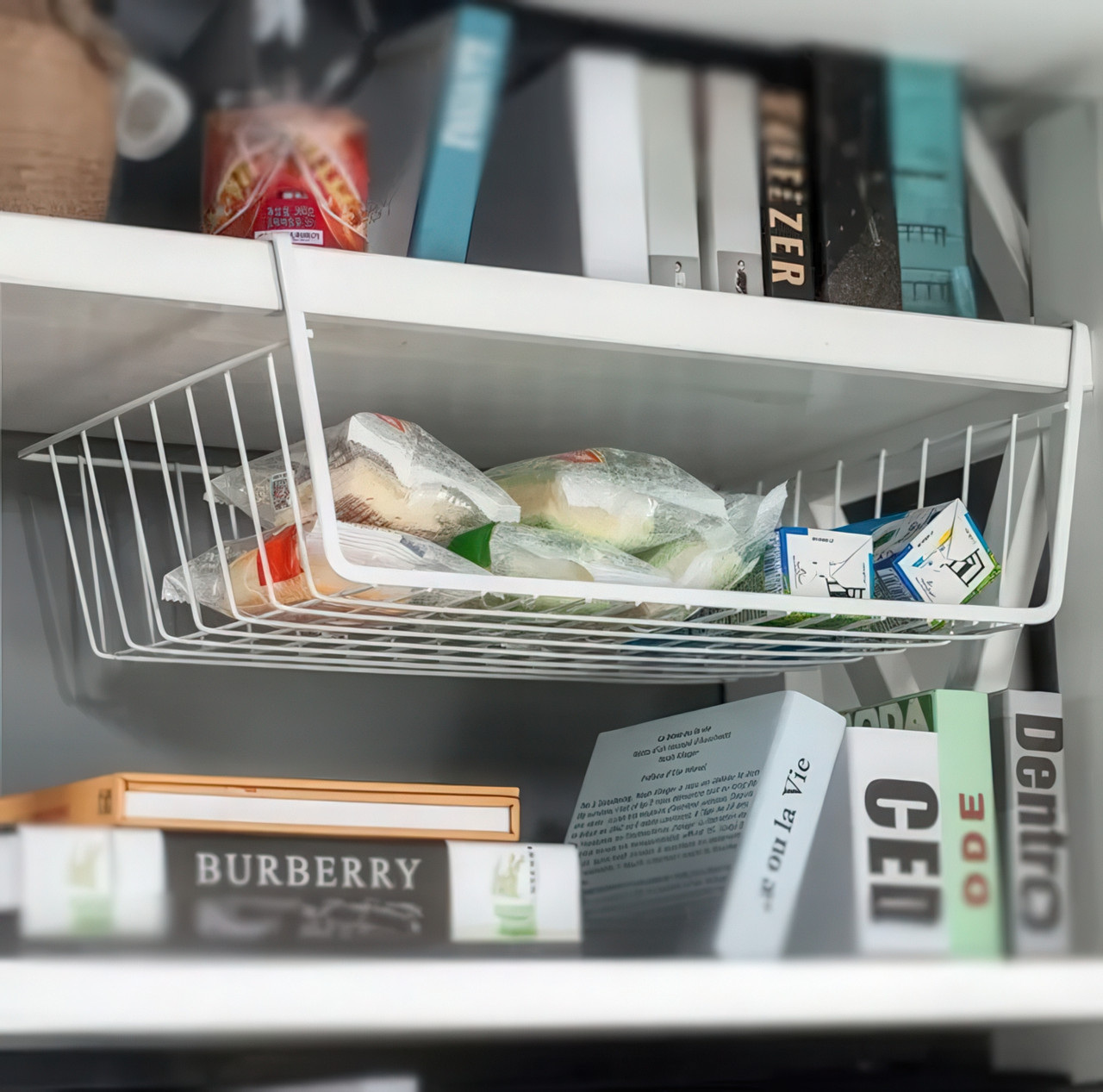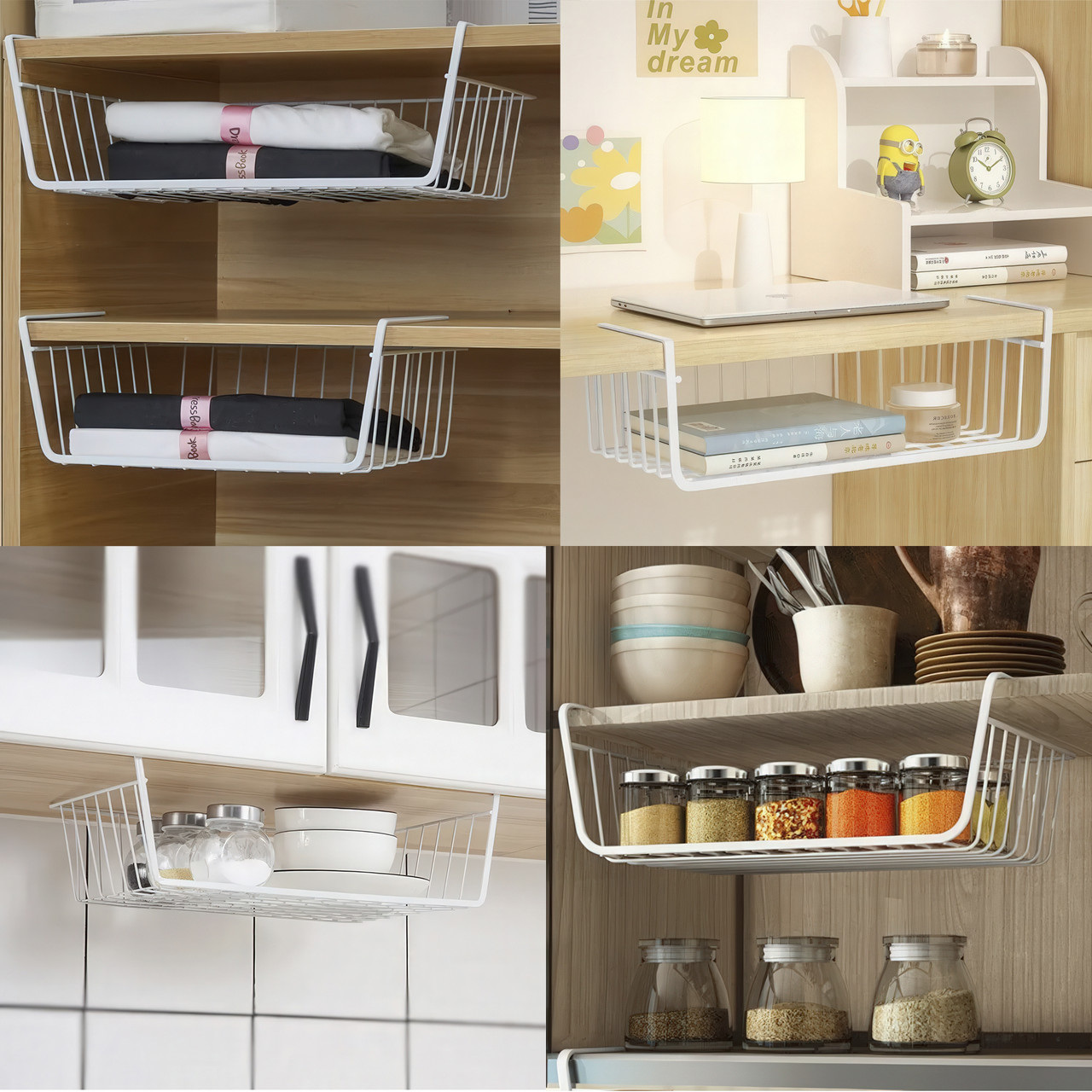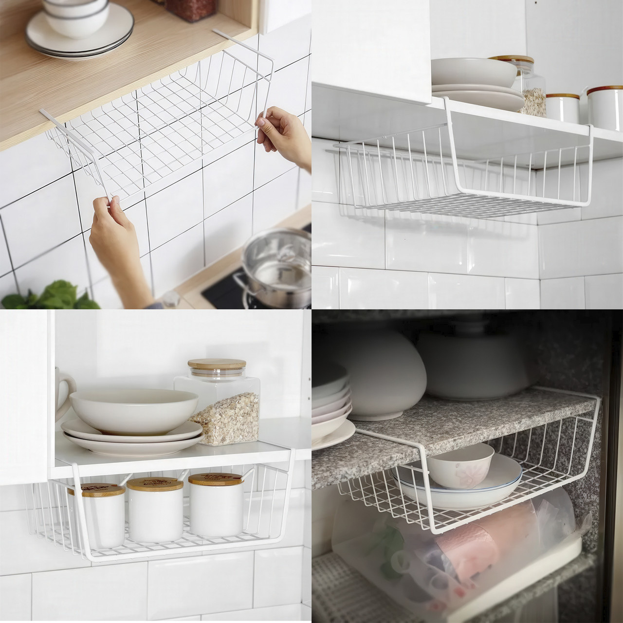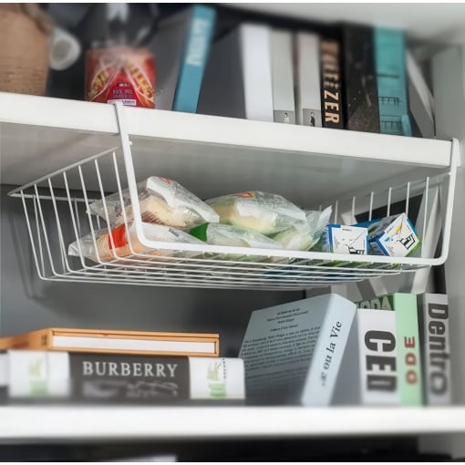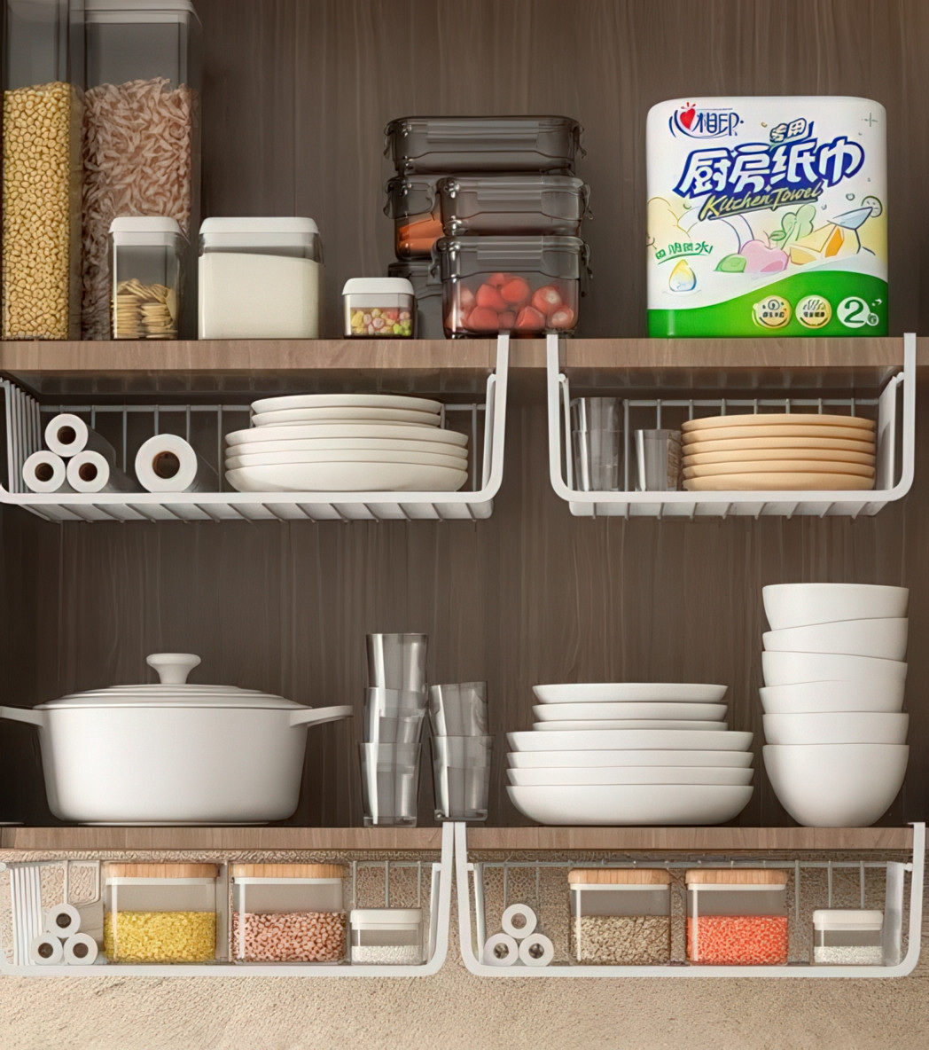 Сколько неиспользуемого пространства пропадает под полками в кухонных шкафах, гардеробах или на стеллажах? Этот подвесной органайзер — не просто корзина, а умное и элегантное решение, которое превращает пустой воздух в полезную и всегда доступную зону хранения. Преимущества Монтаж за одно движение Забудьте о дрели, клее и поврежденной мебели. Установка этой корзины гениальна в своей простоте. Просто наденьте ее на край полки, и она мгновенно готова к работе. Это идеальное решение для съемных квартир и для всех, кто ценит свою мебель. Мгновенное создание второго уровня Эта корзина работает как второй этаж для вашей полки. Она идеально подходит для хранения тех вещей, которые обычно создают беспорядок: рулонов фольги и пергамента на кухне, шарфов и перчаток в шкафу, или бумаг и блокнотов на офисном стеллаже. Открытый доступ и вентиляция В отличие от закрытых ящиков, сетчатая конструкция обеспечивает постоянную циркуляцию воздуха, что важно для хранения текстиля или продуктов. Кроме того, вы всегда видите, что лежит внутри, и можете легко достать нужный предмет, не перерывая все содержимое. Надежность и долговечность Корзина изготовлена из прочного металла с качественным защитным покрытием. Она не прогибается под весом, не боится влаги и рассчитана на долгие годы службы. Вы можете быть уверены, что она выдержит ежедневную нагрузку. Универсальность для всего дома Используйте ее на кухне для специй и полотенец, в гардеробе для аксессуаров, в ванной для косметики, в детской для небольших игрушек или в гараже для инструментов. Это универсальный солдат в борьбе за идеальный порядок. Это не просто корзина, а ваш секретный инструмент для оптимизации пространства. Она помогает избавиться от беспорядка, использовать каждый сантиметр вашего дома и делает его более функциональным и продуманным. Характеристики Тип: Корзина-органайзер, подвесная Материал: Металл с защитным покрытием Цвет: Белый Размер: 37 х 26 х 11 см Тип установки: Навесной (без сверления)