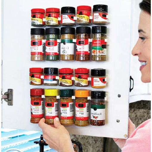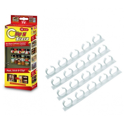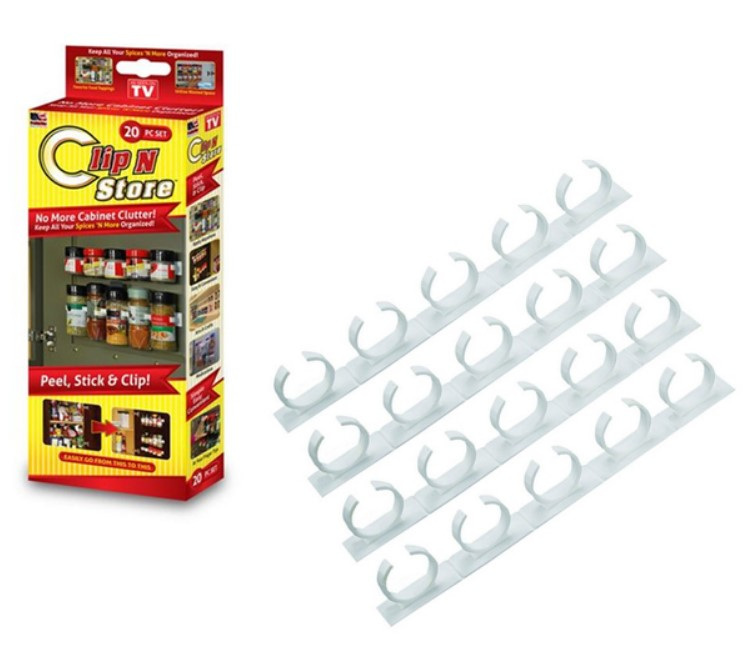 Clip N Store позволяет хранить до 20 баночек со специями, экономя место в шкафах и на рабочих поверхностях. Планки можно легко разъединить на отдельные сегменты, чтобы разместить их в удобных местах: в кухонных шкафах, на дверцах, в холодильнике или на стене.
