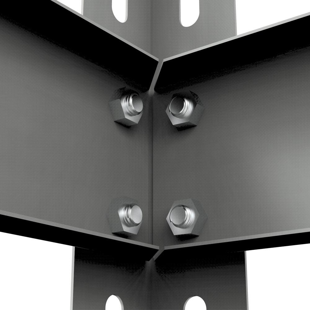 • Стійки та траверси стелажів виготовлені з оцинкованого металу або чорного металу, покритого порошковим забарвленням, що забезпечує стійкість до появи іржі та корозії.