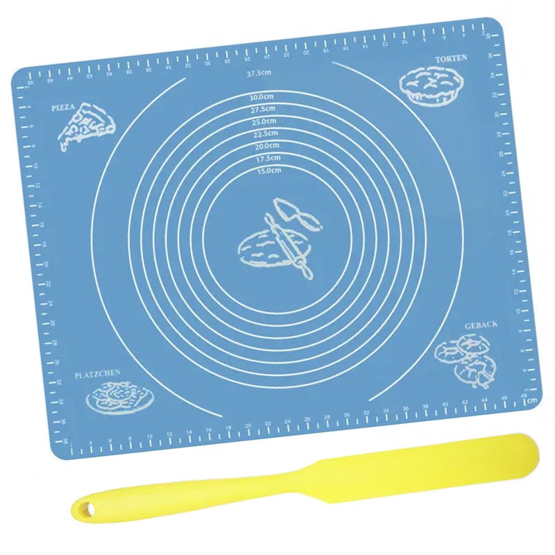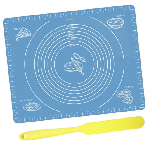 Ідеальний комплект для любителів випічки! Силіконовий килимок з розміткою значно полегшить розкатування тіста, а зручна силіконова лопатка стане незамінним інструментом при приготуванні кремів, тіста чи глазурі.