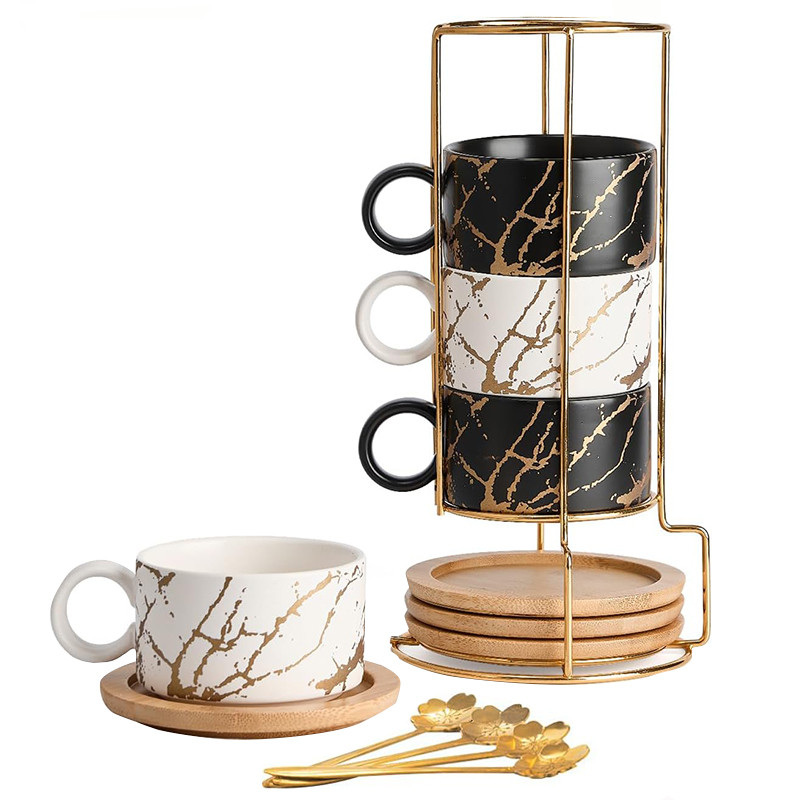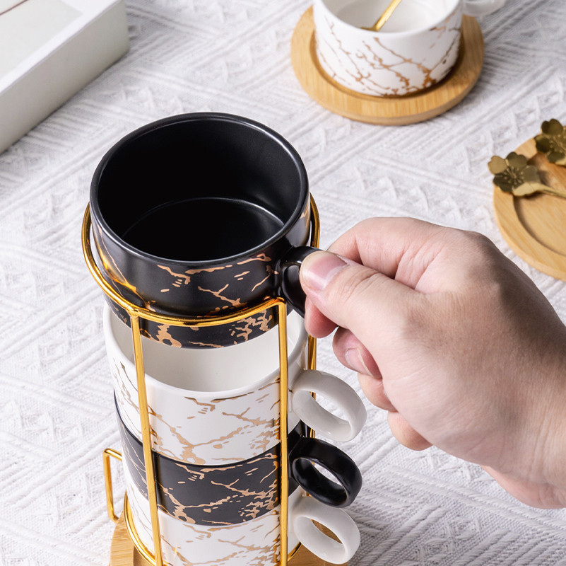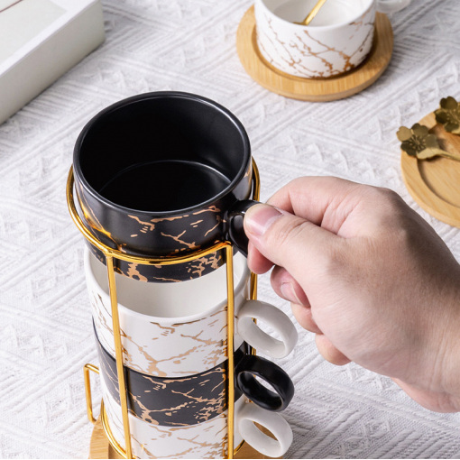 Набор чашек No Brand Мраморная роскошь 4 шт Black-White 13154-83929