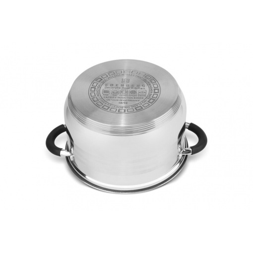 Высококачественная нержавеющая сталь, зеркальная полировка, 5-ти слойное термоаккумулирующее не деформирующееся дно обеспечивает равномерную теплопроводность, быстрое распределение и долгое удержание тепла, пища не пригорает.