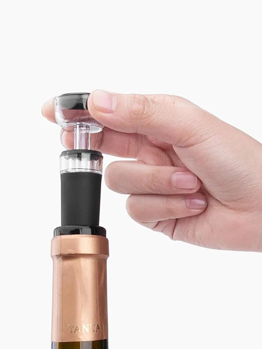 Набор многоразовых пробок для вина со встроенным вакуумным насосом 2 шт Эта вакуумная пробка идеально подходит для герметичного закрытия бутылок вина, помогая сохранить их свежесть и аромат даже после открытия. Благодаря встроенному механизму для откачки воздуха, пробка предотвращает окисление, что позволяет сохранить высокие вкусовые качества вина на более длительный период времени.Пробка имеет стандартный размер, что делает его совместимым с большинством винных бутылок. Изготовлен из пластика и пищевого силикона, он не изменяет вкус и аромат напитков, а также безопасен для здоровья. Простая в эксплуатации конструкция позволяет без труда вставить пробку в бутылку, а затем с помощью насосного механизма удалить из нее воздух, что значительно замедляет процесс старения вина.Этот аксессуар также подходит для использования с пивными бутылками, что делает его универсальным помощником в сохранении различных напитков.Характеристики:Тип: вакуумная пробка для вина Материал: пластик, пищевой силикон Размер: 2.5 х 1.5 х 8.5 см Цвет: черный с прозрачными элементами Количество в упаковке: 2 шт Особенности: компактен, удобен в использовании, идеален для путешествий и ежедневного использования.