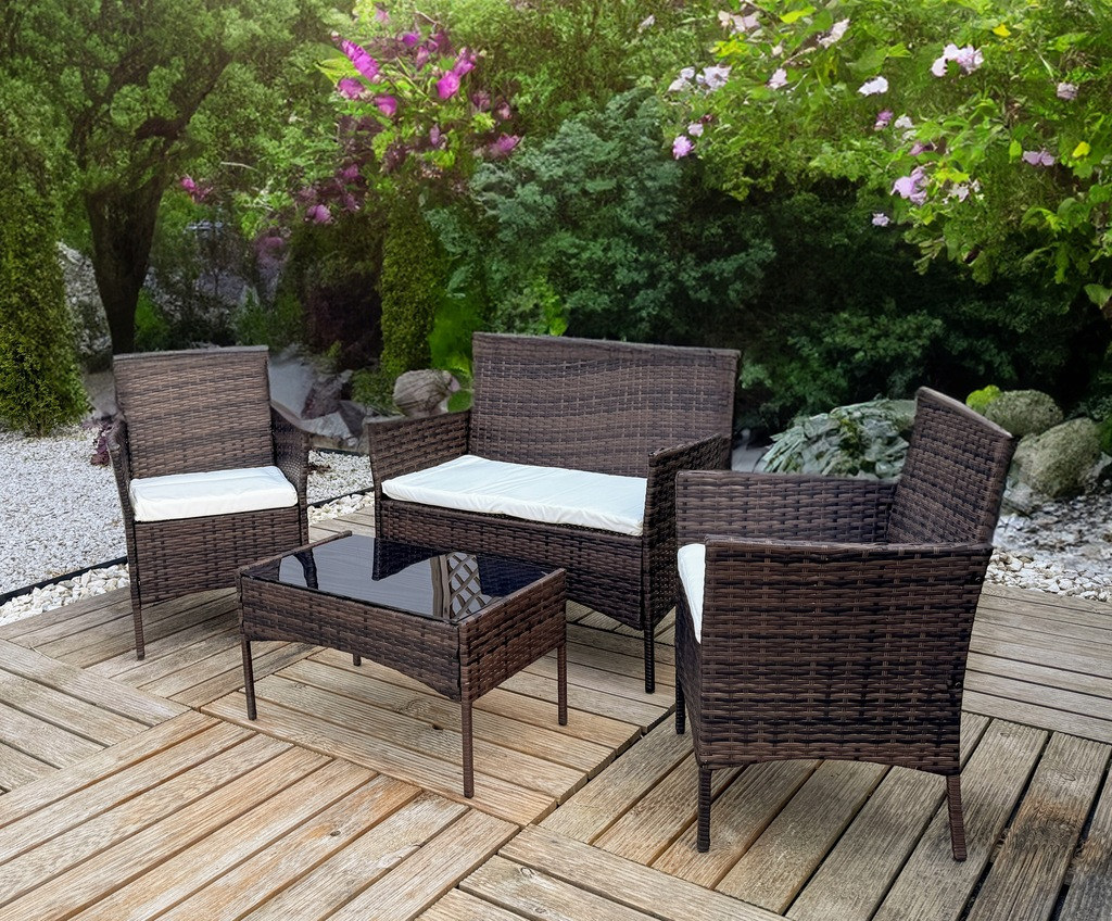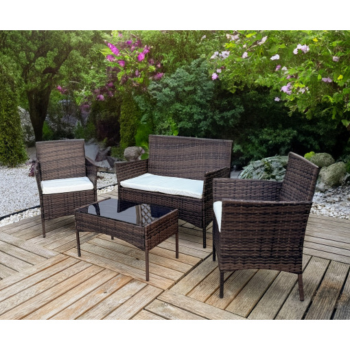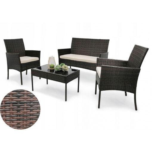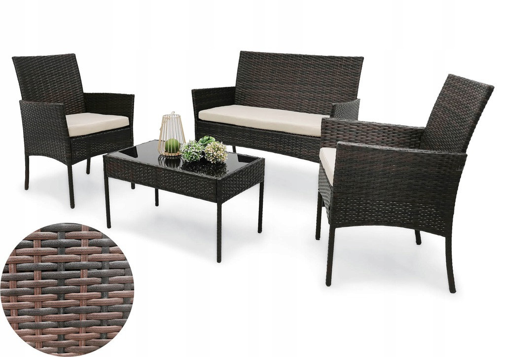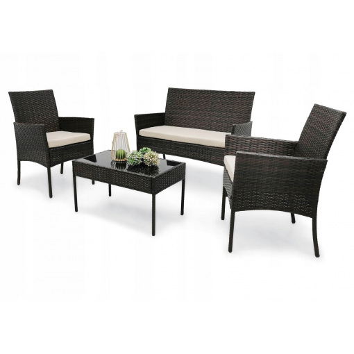 Набор садовой мебели TECHNORATTAN  состоит из стола, двухместного дивана и двух удобных кресел. В комплект также входят удобные подушки и стекло, покрывающее стол. Этот набор объединяет в себе отличную функциональность с современным дизайном. Интересное решение для людей, которые ценят тонкость и практические решения. Современные и простые в уходе садовая мебель из прочного синтетического ротанга обеспечивает стабильность и значительно повышает комфорт сидения.