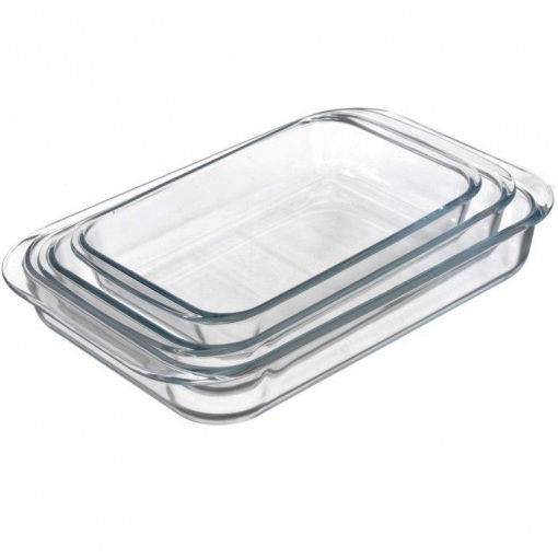 Набор стеклянных противней A-PLUS 3шт (1086) Прямоугольный Набор жаропрочных противней с лаконичным дизайном.