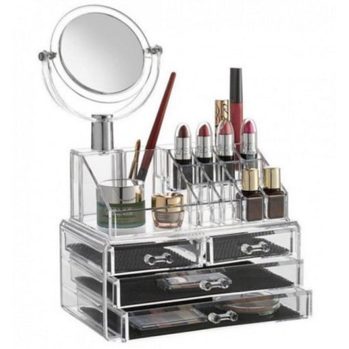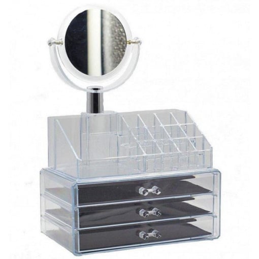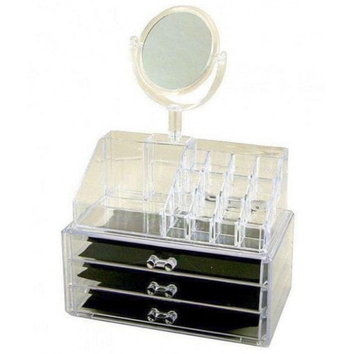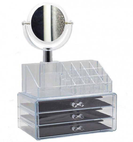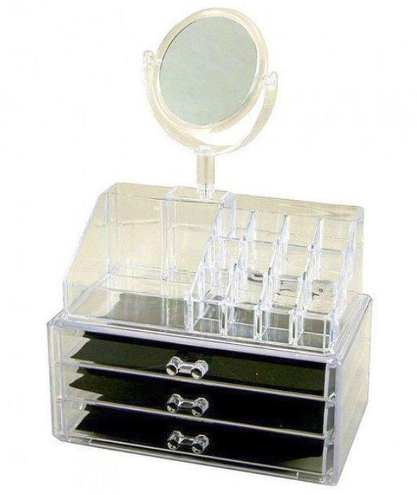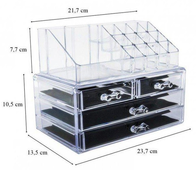 Прозрачный пластик позволяет легко и быстро находить нужную косметику и аксессуары, а нейтральный дизайн впишется в любой интерьер. Особенности: 3 ящика и надставка. Пространство и экономия времени: Забудьте рыться в сумке для поиска нужного средства макияжа. Держите косметические продукты или ювелирные изделия всегда под рукой. Идеально подходит для отображения на вашем туалетном столике или в вашей ванной комнате. Прозрачный дизайн позволяет легко увидеть содержимое. Избавьтесь от беспорядка и беспорядка на вашем столе.