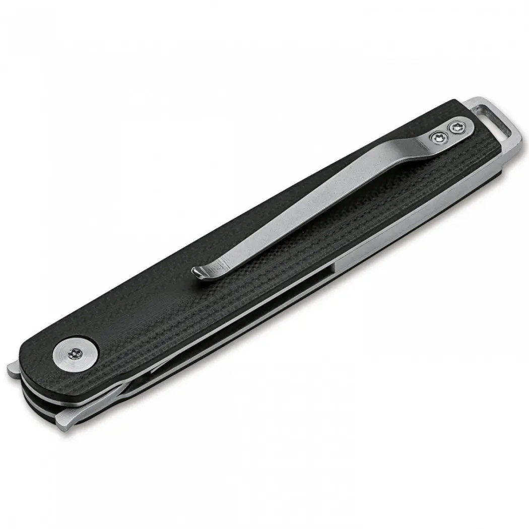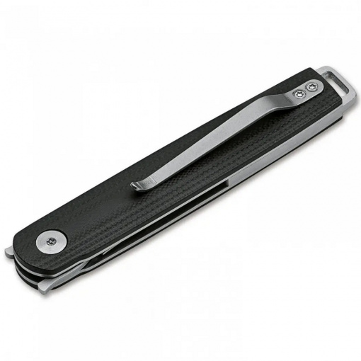 Складной нож Boker Plus LRF, G10 – результат совместной работы Boker и дизайнера Kensei Matsuno. Его отличительными чертами являются простота и лаконичность линий в соединении с отменными материалами самого высокого качества. Клинок ножа Kensei Matsuno изготовлен из очень твердой японской премиум стали VG-10, способной долго сохранять заточку режущей кромки и успешно сопротивляться коррозии. Нож интересен своей системой открывания. В данном случае это Front Flipper. Простая и надежная система при открытом ноже прячется в рукоять, когда клинок раскрыт. Открывание клинка идеальное, а ход плавный, благодаря системе подшипников. Рукоять изготовлена из легкого композитного материала G-10 черного цвета, с приятной текстурой. Стальные лайнеры являются надежной основой ножа, скрывая в себе запирающий механизм Liner Lock. Завершающим аккордом служит компактная стальная карманная клипса и отверстие для темляка, размещенное на пятке рукояти. Boker Plus LRF, G10 - невесомый джентльмен, выполненный в японском стиле.