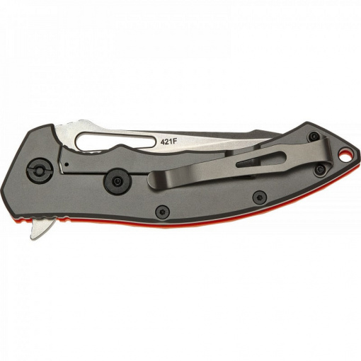 Раскрыть нож можно двумя способами: с помощью большого отверстия на обухе или за "пловец" акулы, мощный флипер. Оба способа мгновенно выдвигают клинок без лишних усилий. В открытом положении нож фиксируется замком Frame Lock, кстати, известен своей надежностью во всем мире.