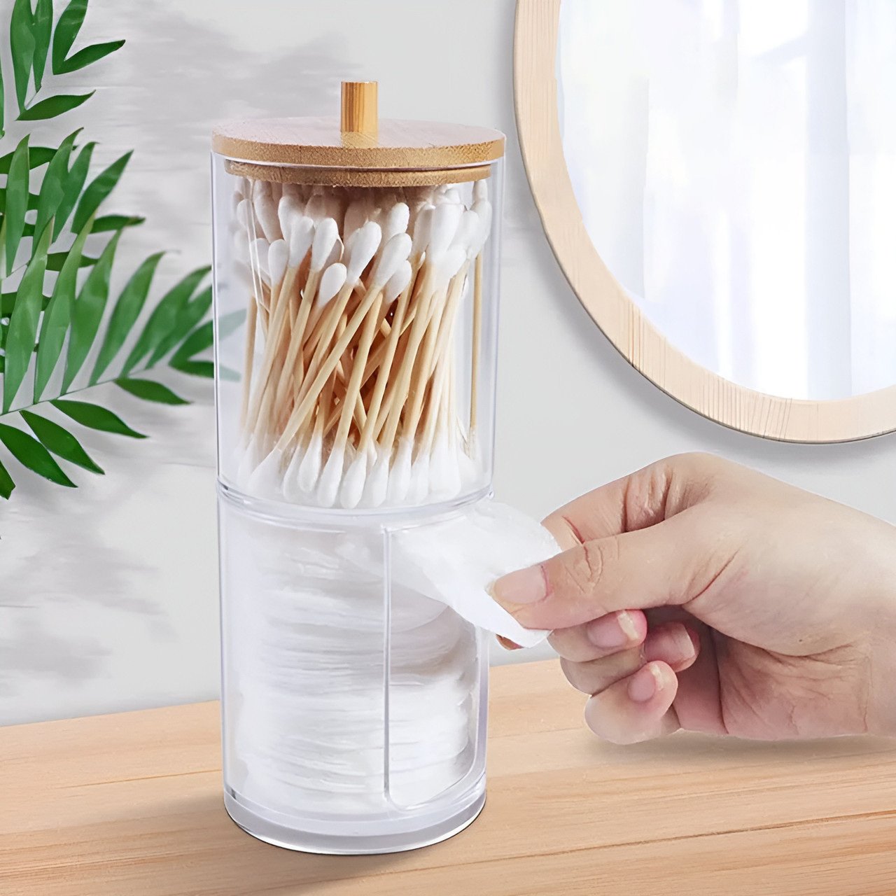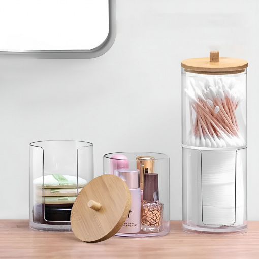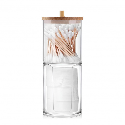 Беспорядок на туалетном столике, пыль на ватных палочках и вечно рассыпающиеся диски — эти мелочи портят ощущение чистоты. Этот органайзер — не просто емкость, а продуманная система, которая превращает хаос ежедневного ухода в элегантный и идеально организованный ритуал. Преимущества Продуманная модульная конструкция Органайзер состоит из двух независимых секций, которые можно использовать как вместе, так и по отдельности. Поставьте их друг на друга, чтобы сэкономить место, или разместите в разных частях ванной комнаты — полная свобода для организации вашего пространства. Гигиеничный и удобный доступ Нижний отсек для ватных дисков оснащен специальной прорезью. Это гениально простое решение позволяет вам легко достать один диск, не прикасаясь к остальным. Это не только удобно, но и максимально гигиенично. Эстетика и защита Верхний контейнер для ватных палочек закрывается стильной крышкой из натурального бамбука. Она не только добавляет в интерьер нотку тепла и эко-стиля, но и надежно защищает содержимое от пыли и влаги, сохраняя ватные палочки в идеальной чистоте. Сочетание стиля и долговечности Кристально чистый акрил выглядит как дорогое стекло, но при этом гораздо прочнее и безопаснее. Он не боится влаги, не мутнеет со временем и позволяет мгновенно оценить содержимое. В сочетании с теплым оттенком бамбука он создает гармоничный и современный аксессуар. Мгновенный визуальный контроль Прозрачные стенки позволяют вам всегда видеть, сколько дисков и палочек осталось. Вы сможете вовремя пополнять запасы и больше никогда не окажетесь в ситуации, когда нужные средства закончились в самый неподходящий момент. Это не просто органайзер, а маленький, но важный элемент, который вносит в ваш быт ощущение порядка, продуманности и эстетики. Он превращает рутинный уход в приятный ритуал и станет прекрасным, стильным подарком для каждого, кто ценит красоту в деталях. Характеристики Тип: Органайзер для косметических принадлежностей Материал: Акрил, бамбук (крышка) Цвет: Прозрачный, натуральное дерево Размер: 17 х 7 см Особенности: Двухсекционный, с крышкой, с дозатором для дисков