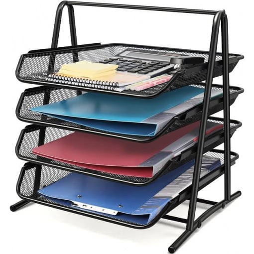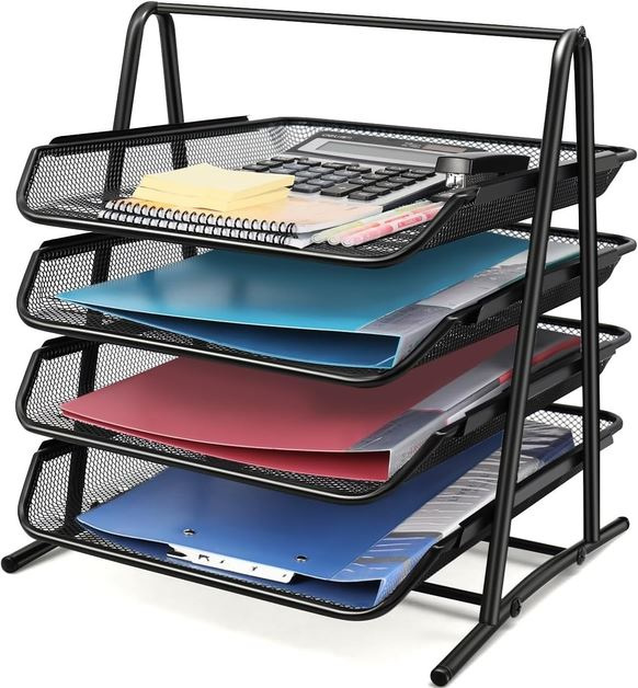 Четыре выдвижных лотка обеспечивают достаточно места для хранения разнообразных предметов, таких как файлы, почта, документы, папки, счета и письма. Упорядочивайте свои вещи и держите их под рукой, создавая порядок на своем рабочем столе или прилавке.