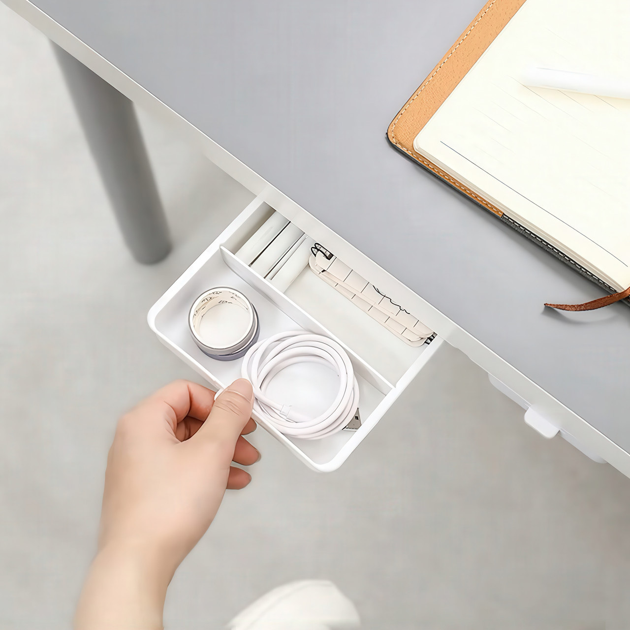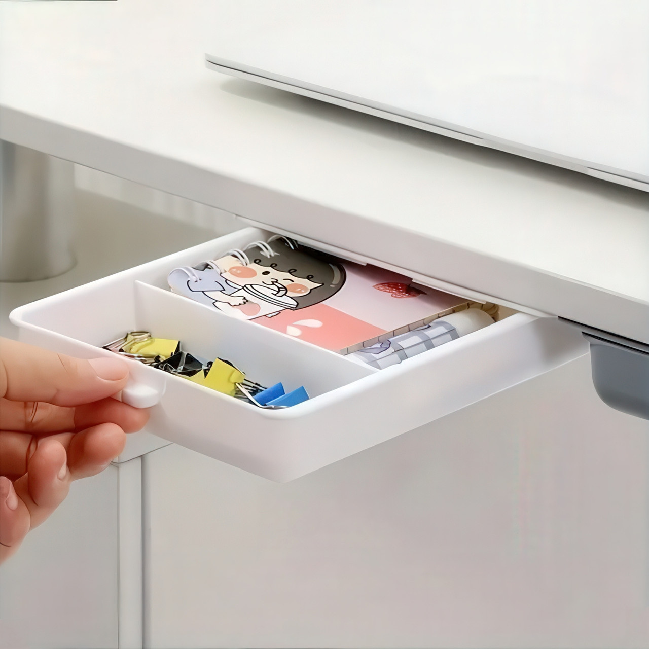 Ваш рабочий стол завален ручками, заметками и проводами, а свободного места для творчества или работы катастрофически не хватает? Этот скрытый органайзер — это гениальное решение, которое превращает неиспользуемое пространство под столешницей в полноценный и всегда доступный выдвижной ящик. Преимущества Скрытое хранилище, которое всегда под рукой Это ваш личный секретный ящик. Он позволяет убрать с глаз долой все то, что создает визуальный шум — канцелярию, зарядные устройства, косметику, — но при этом оставляет все необходимое на расстоянии вытянутой руки. Ваш стол становится образцом минимализма и чистоты. Монтаж без сверления и повреждений Забудьте о дрели, пыли и необратимых отверстиях в вашей любимой мебели. Мощная клеевая основа обеспечивает сверхнадежную фиксацию на любой гладкой поверхности: на дереве, пластике, металле или стекле. Установка занимает меньше минуты и не оставляет абсолютно никаких следов. Идеально для офисной мебели или съемных квартир. Плавное и бесшумное скольжение Продуманный механизм обеспечивает легкое и плавное выдвижение ящика. Он не заедает и не гремит, позволяя вам достать нужную вещь, не отвлекаясь от работы или творческого процесса. Надежность и универсальность Органайзер изготовлен из высококачественного, прочного ABS-пластика, который выдерживает ежедневную нагрузку и легко моется. Используйте его не только под рабочим столом, но и под кухонной полкой для специй, под туалетным столиком для косметики или в мастерской для мелких инструментов. Это не просто ящик, а ваш личный ассистент в создании идеального порядка. Он освобождает ваше рабочее пространство и ваш разум от беспорядка, делая окружение более гармоничным, а работу — более продуктивной. Характеристики Тип: Органайзер подвесной, выдвижной ящик Материал: ABS-пластик Цвет: Белый Тип установки: Самоклеящийся (без сверления) Размер: 21.5 х 15.3 см