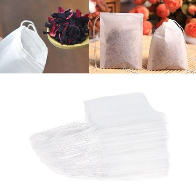 Пакет для заваривания чая с затяжкой No Brand 7х9 см Белый 100 шт (H051278)