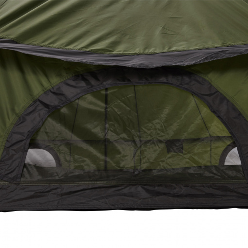 - Палатка имеет три больших вентиляционных клапана, оборудованные москитной сеткой, и три вентиляционных отверстия в верхней части палатки, что обеспечивает необходимый уровень вентиляции и отсутствие конденсата.