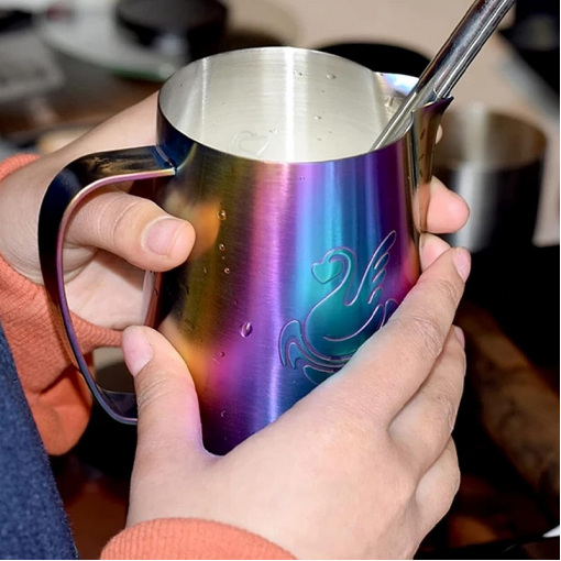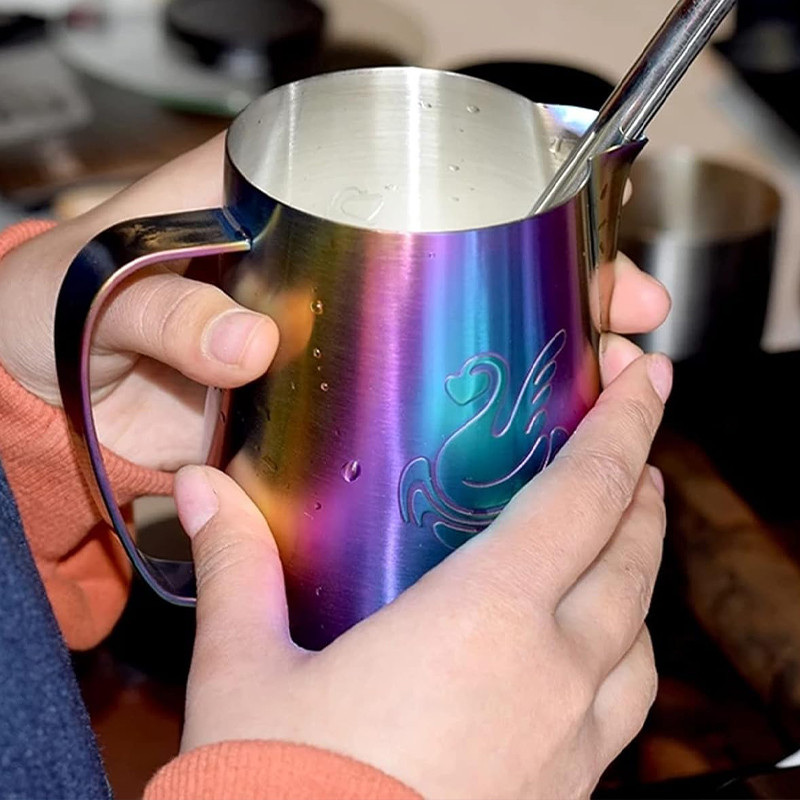 Питчер для молока Идеальный молочник для вспенивания молока! Этот питчер для молока из нержавеющей стали — ваш незаменимый помощник для приготовления идеальной молочной пенки! Созданный для бариста и ценителей кофе, он обеспечивает легкое и качественное вспенивание молока для латте, капучино и других любимых напитков. Ключевые особенности Оптимальный объем Идеально подходит для приготовления напитков, минимизируя потери молока. Высококачественная нержавеющая сталь Гарантирует долговечность, гигиеничность и легкость в уходе. Материал устойчив к коррозии и не влияет на вкус молока. Удобная ручка Эргономичный дизайн обеспечивает надежный хват и комфорт во время работы. Специальный носик Позволяет легко и аккуратно наливать вспененное молоко, создавая красивый латте-арт. Универсальность Подходит для использования с любыми типами вспенивателей молока – паровыми трубками кофемашин, ручными или автоматическими вспенивателями. С этим питчером вы сможете наслаждаться профессионально приготовленными молочными напитками прямо у себя дома!