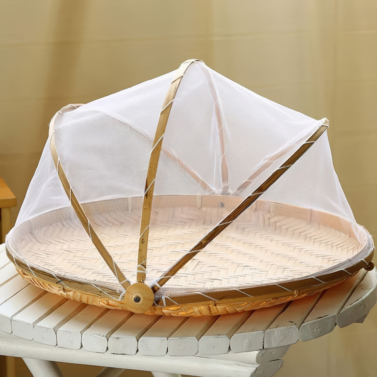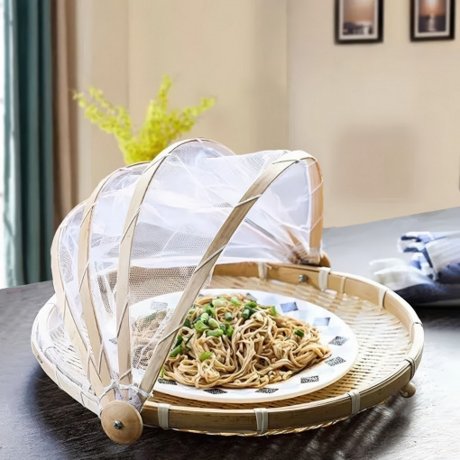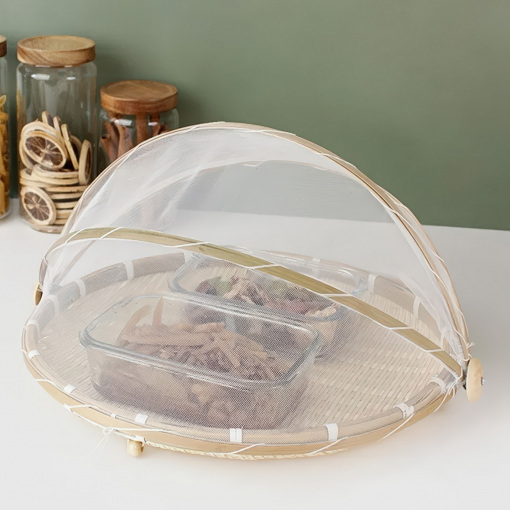 Летние обеды на террасе, свежая выпечка на дачном столе или фрукты на пикнике — эти моменты требуют не только вкуса, но и эстетики. Этот плетеный поднос с воздушной сеткой-крышкой создан для того, чтобы ваши блюда оставались не только свежими и аппетитными, но и надежно защищенными, добавляя сервировке нотку природного очарования. Преимущества Элегантная и надежная защита Забудьте о необходимости отмахиваться от назойливых насекомых. Тонкая, но прочная сетка-купол создает непроницаемый барьер для мух и ос, одновременно защищая еду от уличной пыли и падающих листьев. При этом она оставляет ваши блюда на виду, сохраняя красоту сервировки. Тепло натурального бамбука Поднос изготовлен вручную из натурального бамбука — экологически чистого, легкого и прочного материала. Он абсолютно безопасен для контакта с пищевыми продуктами, не впитывает запахи и привносит в сервировку стола тепло и уют ручной работы. Умная складная конструкция В одно мгновение плоский поднос превращается во вместительную корзину с высоким куполом. А после использования крышка так же легко складывается, делая поднос абсолютно плоским. Это гениальное решение для компактного хранения в кухонном шкафу или для перевозки. Сохранение свежести продуктов В отличие от глухой крышки, сетка обеспечивает свободную циркуляцию воздуха. Это особенно важно для теплой выпечки или хлеба, которые не отсыреют и сохранят хрустящую корочку, а также для фруктов и овощей, которые не "задохнутся". Универсальность в сервировке Используйте его для подачи хлеба, булочек, фруктов, сырной нарезки или десертов. Он станет центральным элементом стола на даче, незаменимым помощником на пикнике и стильным решением для хранения выпечки на домашней кухне. Это не просто поднос, а продуманный элемент культуры отдыха на свежем воздухе. Он сочетает в себе пользу, природную красоту и ручную работу, делая каждую трапезу более гигиеничной, эстетичной и беззаботной. Идеальный аксессуар для гостеприимных хозяев и прекрасный подарок для ценителей уюта. Характеристики Тип: Поднос с крышкой-сеткой Материал: Натуральный бамбук Диаметр: 30 см Высота в разложенном виде: 17.5 см Цвет: Светло-бежевый Особенности: Ручная работа, складная конструкция