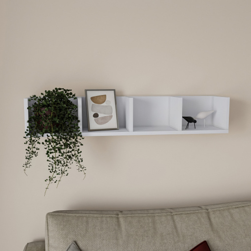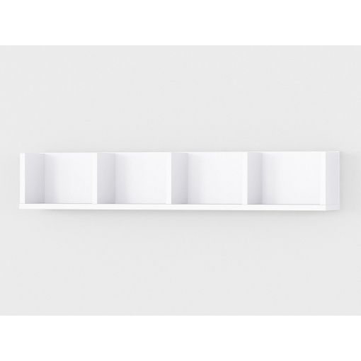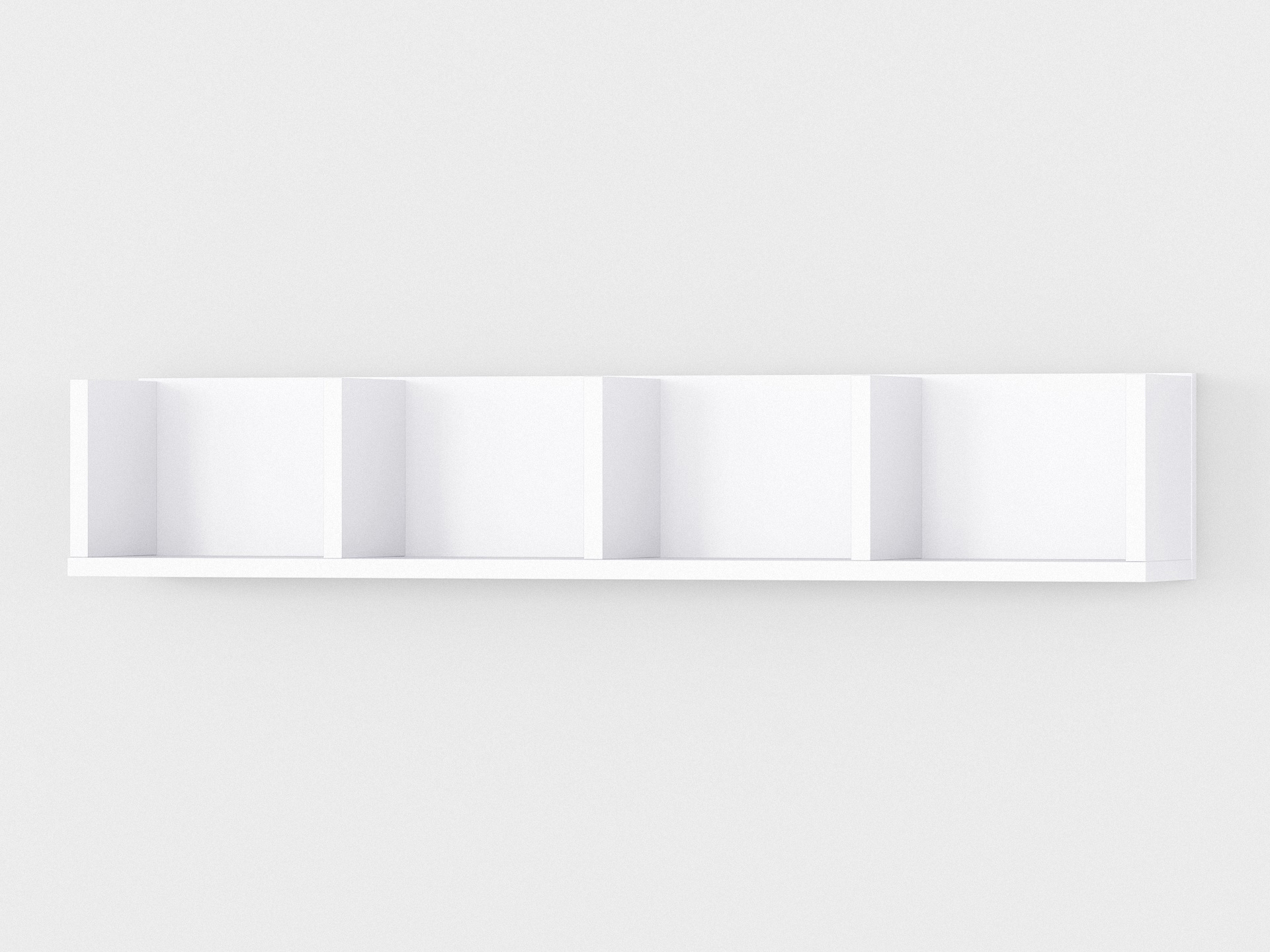 Настінна полиця GT-31 — це лаконічне й практичне рішення для зберігання та декору. Модель складається з чотирьох однакових секцій, розташованих в одну лінію, що створює строгий ритм і гармонійно вписується у сучасний інтер’єр. Полиця ідеально підходить для розміщення книг, аксесуарів, свічок, декору або фоторамок.