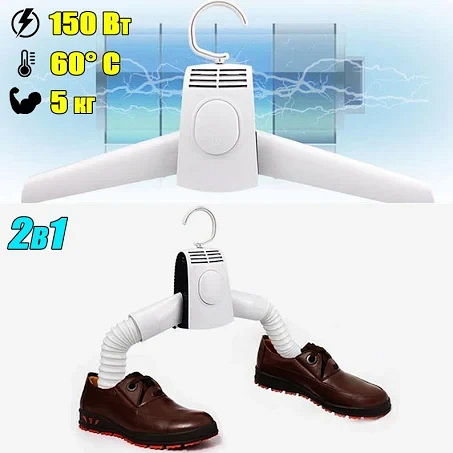 Универсальная электрическая сушилка  – это удобное и компактное решение для быстрой сушки одежды и обуви. Устройство оснащено функцией равномерного распределения теплого воздуха, что позволяет эффективно сушить вещи, не повреждая ткань. Идеально подходит для использования в домашних условиях, в поездках или в небольших помещениях. Легкая конструкция делает сушилку портативной и удобной в транспортировке. Подходит для сушки футболок, рубашек, нижнего белья, детской одежды, а также обуви с помощью специального насадочного режима.