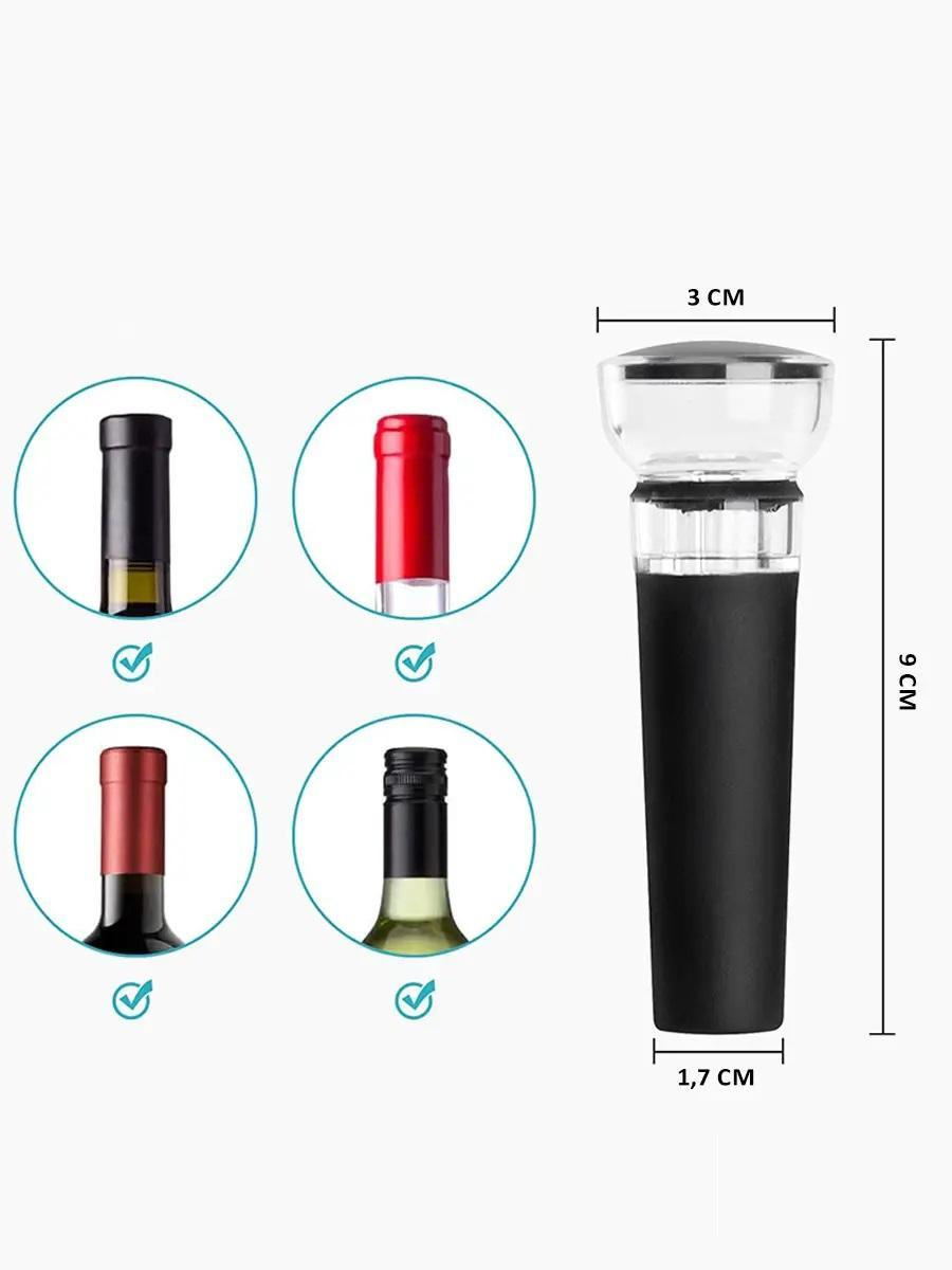 Вакуумная пробка для винаЭта вакуумная пробка идеально подходит для герметичного закрытия бутылок вина, помогая сохранить их свежесть и аромат даже после открытия. Благодаря встроенному механизму для откачки воздуха, пробка предотвращает окисление, что позволяет сохранить высокие вкусовые качества вина на более длительный период времени.Пробка имеет стандартный размер, что делает его совместимым с большинством винных бутылок. Изготовлен из пластика и пищевого силикона, он не изменяет вкус и аромат напитков, а также безопасен для здоровья. Простая в эксплуатации конструкция позволяет без труда вставить пробку в бутылку, а затем с помощью насосного механизма удалить из нее воздух, что значительно замедляет процесс старения вина.Этот аксессуар также подходит для использования с пивными бутылками, что делает его универсальным помощником в сохранении различных напитков.Характеристики:Тип: вакуумная пробка для винаМатериал: пластик, пищевой силикон Размер: 2.5 х 1.5 х 8.5 см Цвет: черный с прозрачными элементами Особенности: компактен, удобен в использовании, идеален для путешествий и ежедневного использования.