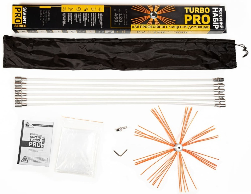 Роторный набор для очистки дымоходов Savent TURBO PRO (1 м×8 шт) предназначен для использования с электродрелью или шуруповертом и подходит как для профессионалов, так и для домашних пользователей. Регулярное применение этого набора способствует повышению эффективности работы отопительного оборудования и обеспечивает уверенность в безопасности и исправном состоянии дымохода.