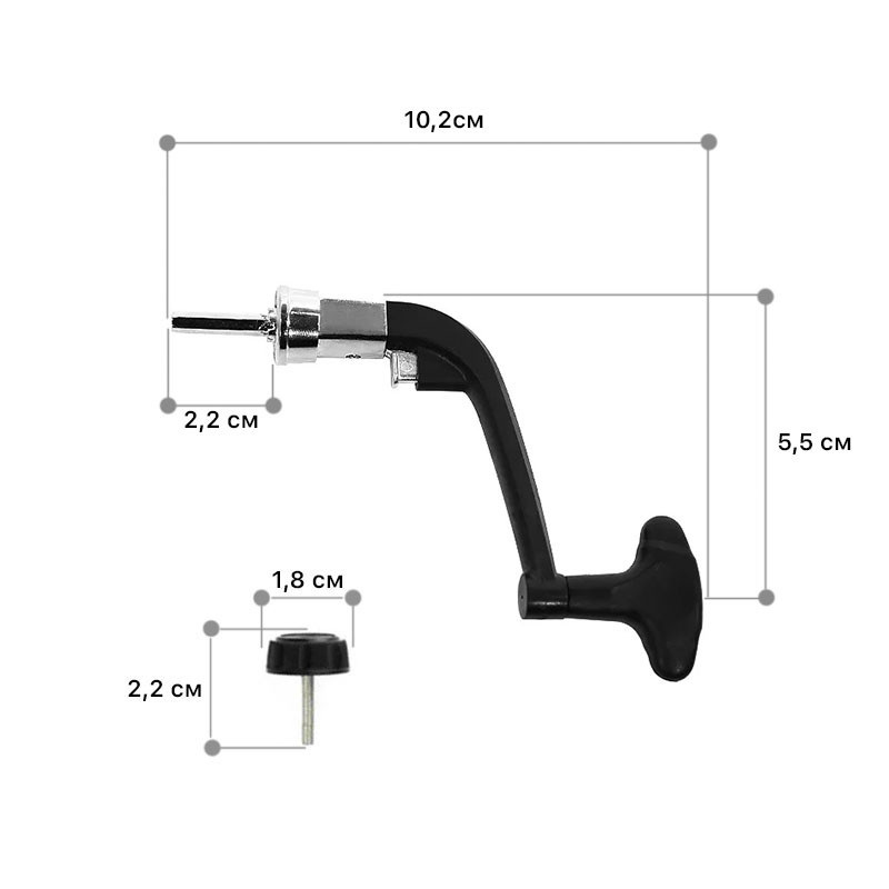 Универсальная ручка Yumoshi для безынерционной катушки Одной из важных частей рыболовной катушки является ручка. От нее, в частности, зависит работоспособность и долговечность катушечного механизма. Она принимает на себя основную нагрузку в процессе разматывания и сматывания нити, и в большей степени – во время клева. При ее поломке приходится ремонтировать катушку. Поэтому, выбирая ручку для катушки рыболовной, нужно внимательно смотреть на ее характеристики. Для изготовления данной детали производитель использует комбинацию двух материалов – металла и пластика. Этот вариант считается вполне надежным, прочным, а учитывая низкую стоимость представленной модели – вполне отличным решением для приобретения новичкам или ребенку. Данная модель складывающегося типа. При покупке рекомендуется обратить внимание на диаметр штока, так как от него зависит наличие люфтов. Также следует измерить шток. Если он слишком короткий, пользоваться катушкой невозможно или тяжело, так как ручка будет касаться ротора.