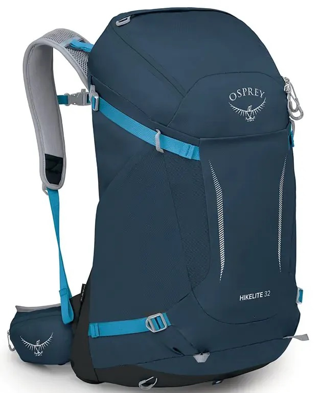 Рюкзак Osprey Hikelite 32 – прогулочный рюкзак, который вместит все необходимое для непродолжительного треккинга и прогулок в городе. Вы сможете поместить туда провизию, воду, карту и сменную одежду. Кроме того, рюкзак имеет DWR покрытие и рейнкавер. Есть кармашек для питьевой системы гидратации объемом до 3 литров. Osprey говорит, что Hikelite 32 имеет (рекомендованную) грузоподъемность от 2 до 11 кг. Он хорошо вентилируется на спине и плечах, чтобы обеспечить вам комфорт во время напряженных подъемов и в теплые дни. Оснащен стабилизирующей рамой LightWire, воздухопроницаемой сетчатой спинкой и дышащими плечевыми ремнями из сетки.