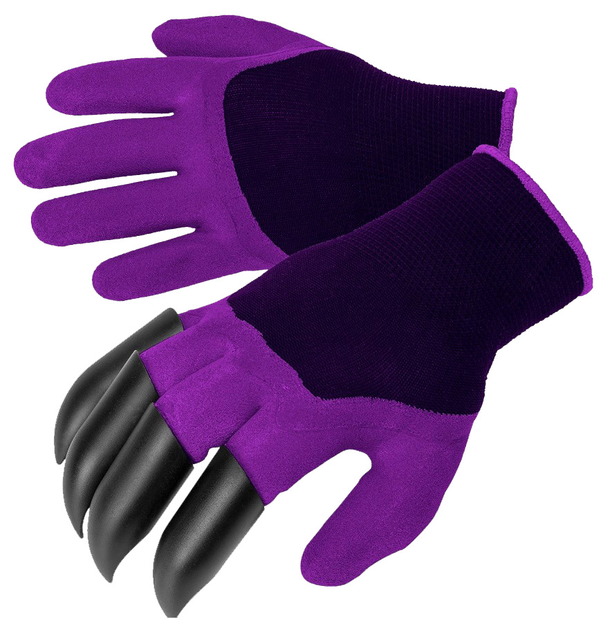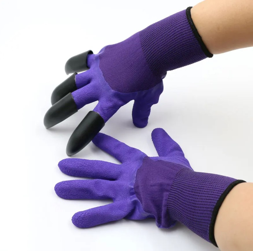 С помощью садовых перчаток со специальными наконечниками Вы сможете рыхлить грядки, выкапывать, окучивать растения без грабель и тяпок. Чтобы насладится вкусом домашних овощей, ягод и фруктов, а также красотой цветущих клумб в весенне-летний период огородникам приходиться тратить немало сил. Особенно выматывает работа с садовым инвентарем. Перчатки с когтями заменят и грабли, и тяпки, а в некоторых ситуациях даже лопату. Работайте легко и в свое удовольствие, используя перчатки-грабли Garden Genie Gloves. Перчатки изготовлены из прочного, устойчивого к проколам, водонепроницаемого материала (резина, полиэстер). Аксессуар сохранит руки чистыми и защитит их от повреждений во время работы. Перчатки универсального размера, поэтому подходят каждому садоводу. Секрет популярности перчаток Garden Genie Gloves заключается в наличии оригинальных наконечников. Когти изготовлены из прочного пластика и предназначены для разрыхления почвы, выкапывания растений, рытья ям и посадки семян, окучивания растений. Перчатки помогут обработать землю, посадить цветы и саженцы, а также защитят руки при борьбе с сорняками. Гениальное изобретение легко очищается под струей воды. Оригинальный аксессуар непременно понравится дачникам, садоводам и цветоводам. Перчатки с специальными наконечниками, с легкостью заменят грабли, тяпки, и даже лопату. Материал, из которого они изготовлены – прочный, не пропускающий воду полиэстер. Благодаря этому руки всегда будут в чистоте и порядке. Размер перчаток – универсальный, поэтому подойдут на любую кисть, в независимости от размера. Перчатки с когтями - прекрасный подарок для любителей садоводства и для тех, кто много работает на открытом воздухе. Garden Genie Gloves станут для Вас настоящей находкой! Характеристики: Материал: резина, полиэстер, ABS пластик; Параметры: 23х13 см; Вес: 0,15 кг; Цвет: фиолетовый. Преимущества Garden Genie Gloves: Четыре прочных пластиковых когтя делают вашу повседневную работу в саду быстрой и легкой; Водонепроницаемый материал; Универсальный размер; Перчатки содержат натуральный латекс; Сделаны из прочного материала, который защищает руки от повреждений во время работы.