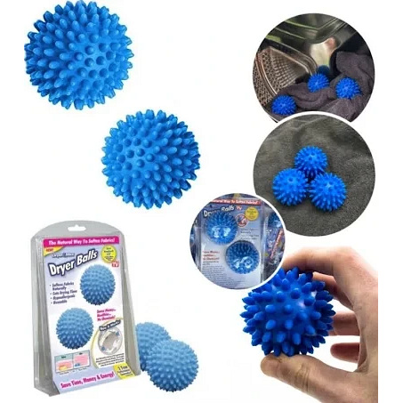 Наверняка в каждом доме найдется немало вещей с наполнителем — с пухом, синтепоном или ватой. И наверняка у многих возникают проблемы со стиркой этих вещей в стиральной машине — наполнитель просто сбивается в комки. Шарики для стирки белья Dryer Balls — средство, которое позволит сохранить наполнитель вещей в первозданном состоянии. Эти шарики, благодаря свойствам материала, из которого они изготовлены и шипам на поверхности, позволяют более эффективно удалить грязь с ткани. Вместе с этим, перемещаясь по барабану вместе с вещами, шарики препятствуют скатыванию наполнителя. А еще Мячики для стирки белья Dryer Balls позволяют экономить стиральный порошок и сокращают время сушки примерно на четверть.