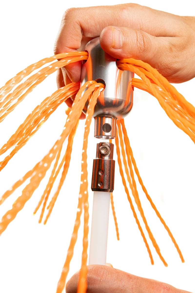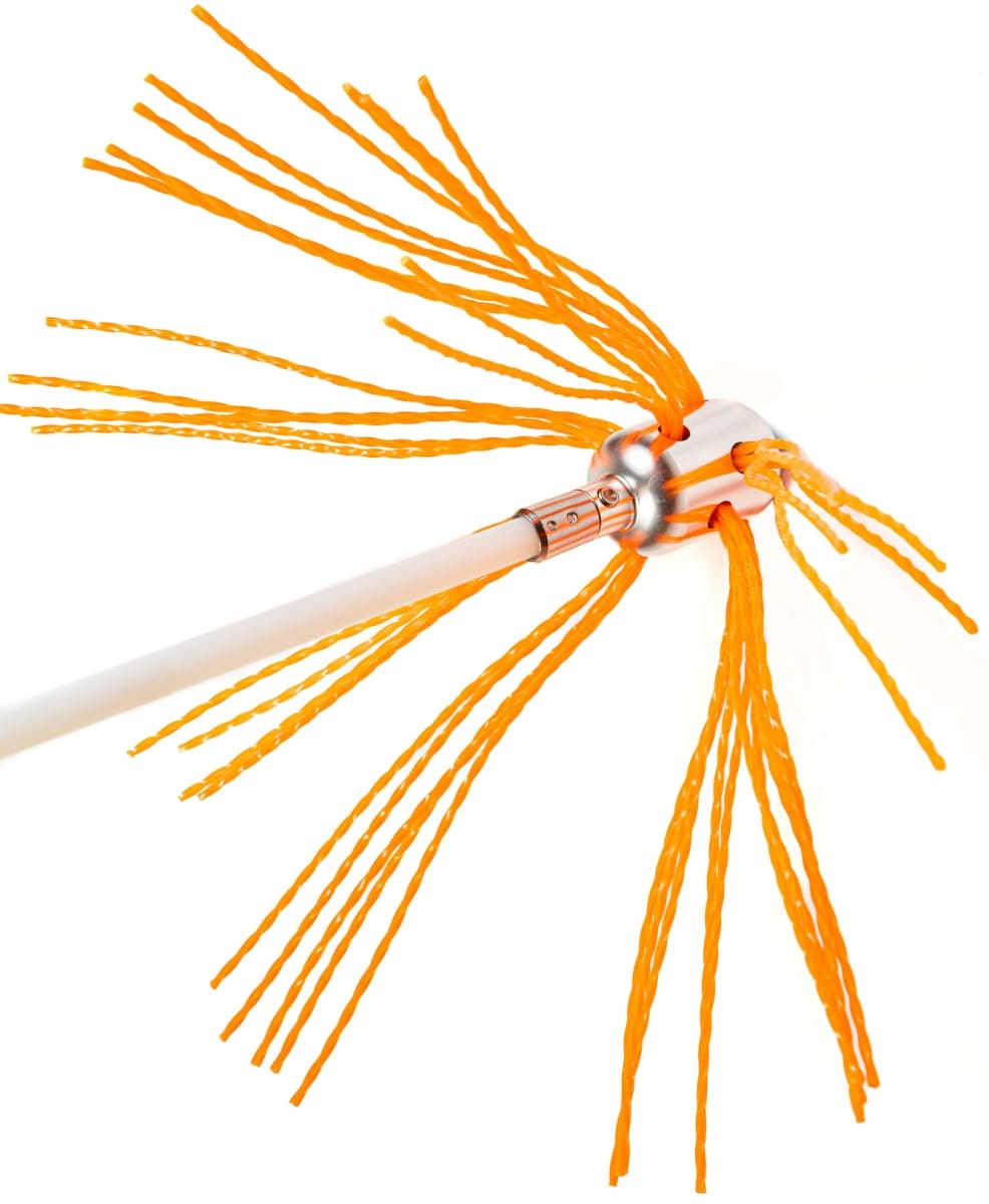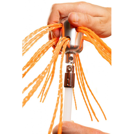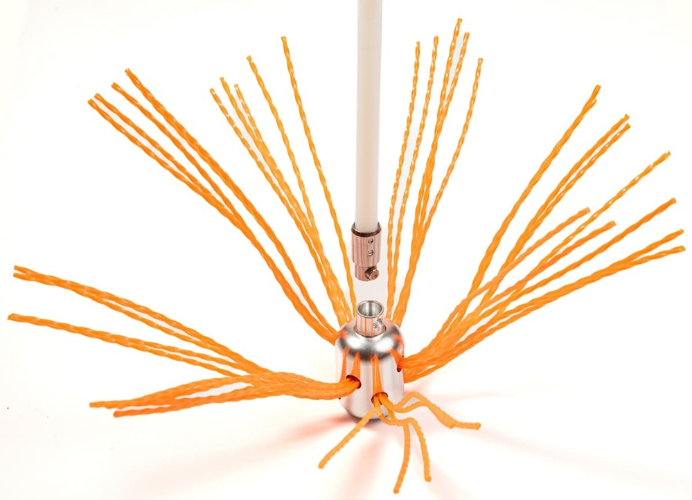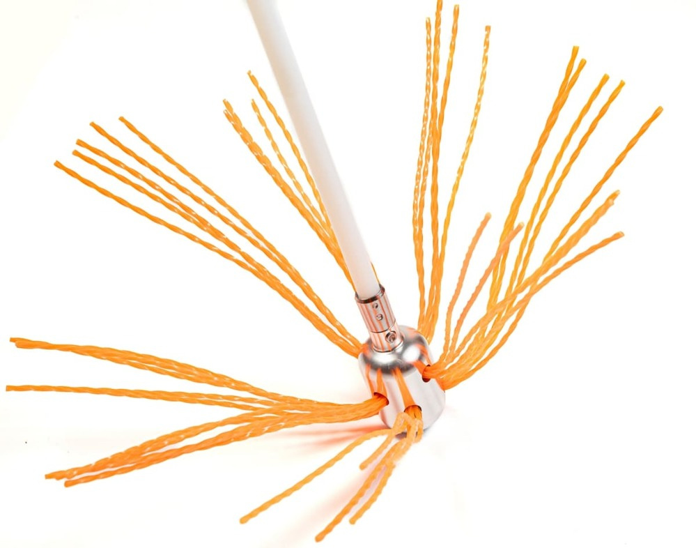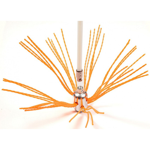 Щетка надежно фиксируется к гибким нейлоновым ручкам благодаря механизму быстрого соединения, поэтому легко проходит любые смещения и повороты. Это позволяет легко очищать дымоходы диаметром от 100 до 400 мм любой формы.