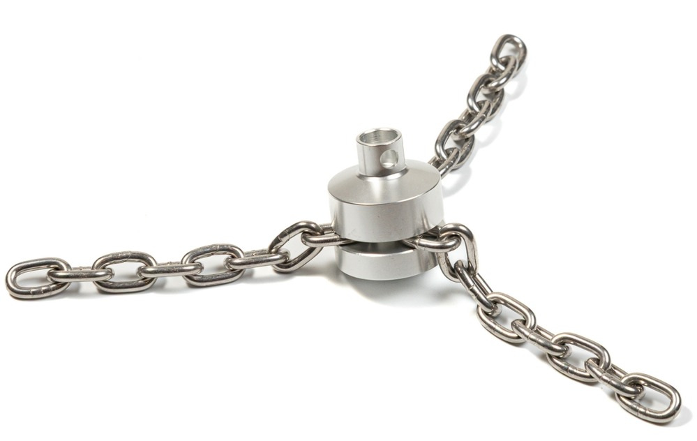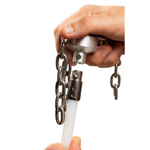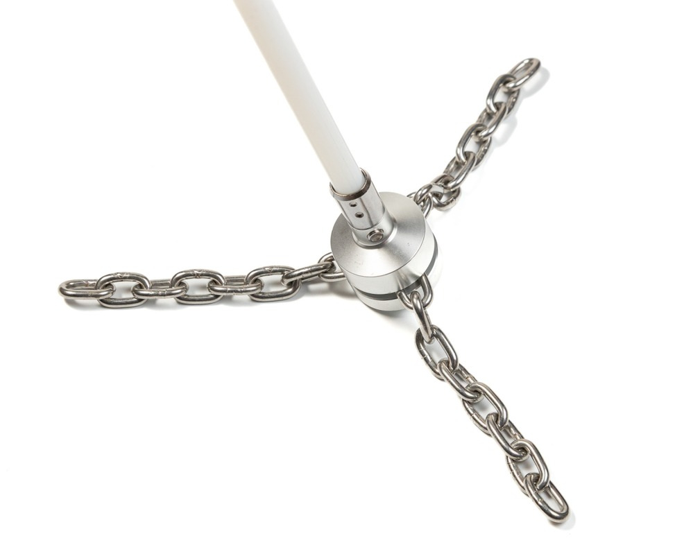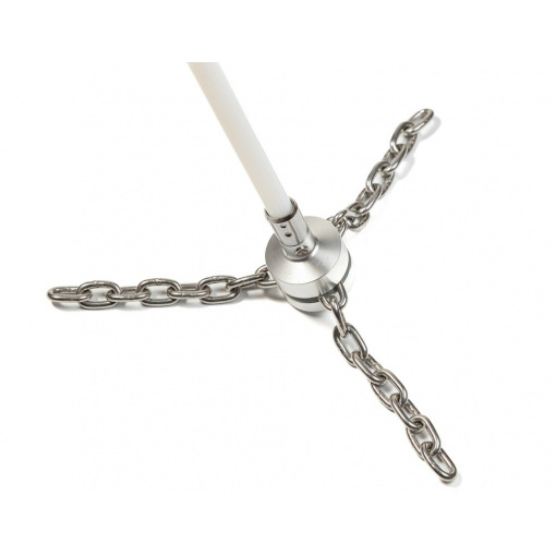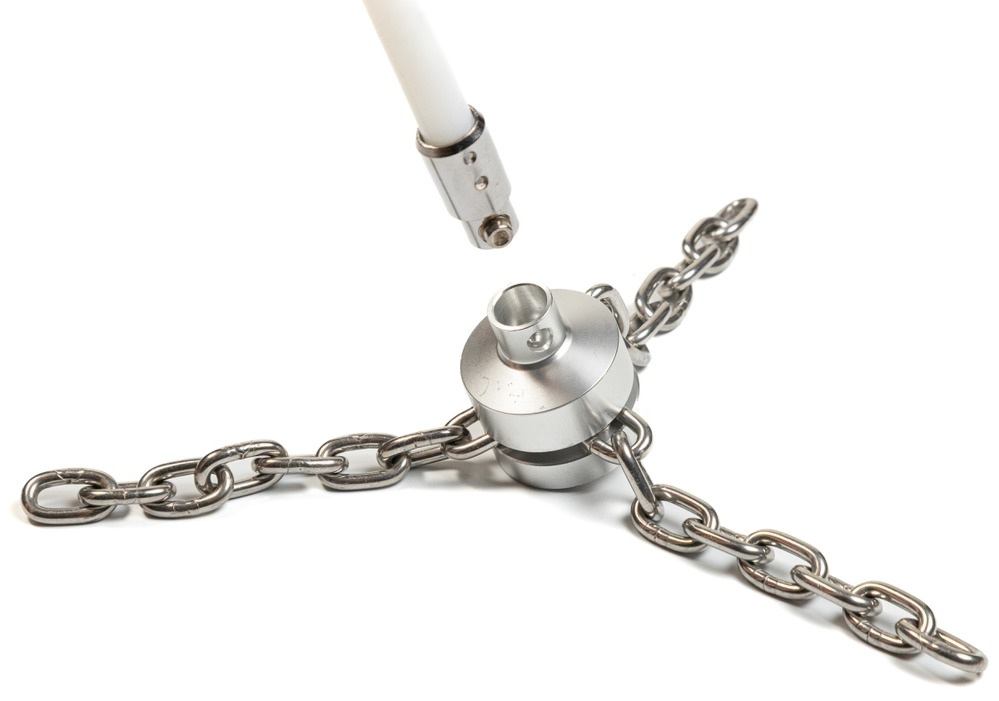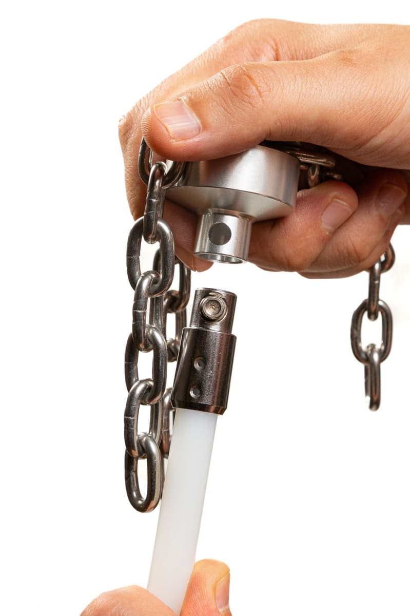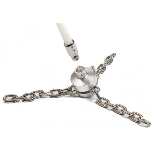 Щетка надежно фиксируется к гибким нейлоновым ручкам благодаря механизму быстрого соединения, поэтому легко проходит любые смещения и повороты. Это позволяет легко очищать дымоходы диаметром от 100 до 400 мм любой формы. При необходимости цепи можно легко заменить на новые.