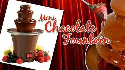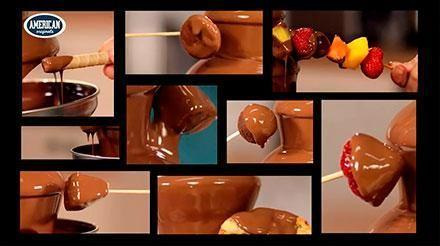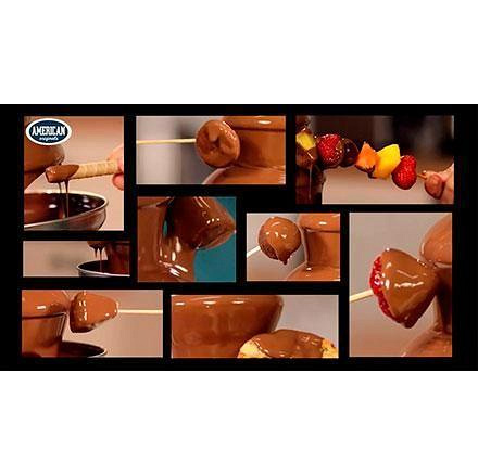 Благодаря установленному на фондю Fondue Fountain двигателю и винтовому валу, растопленный шоколад и чаши проникает в отверстие в центре и по своеобразной винтовой лестнице поднимается вверх, где уже стекает по искусно сделанным ступеням фонтана.