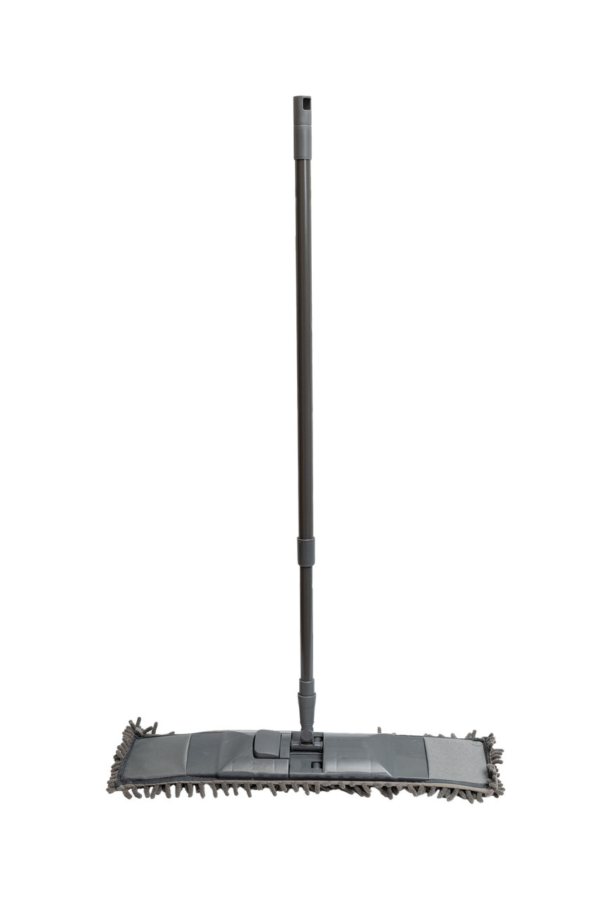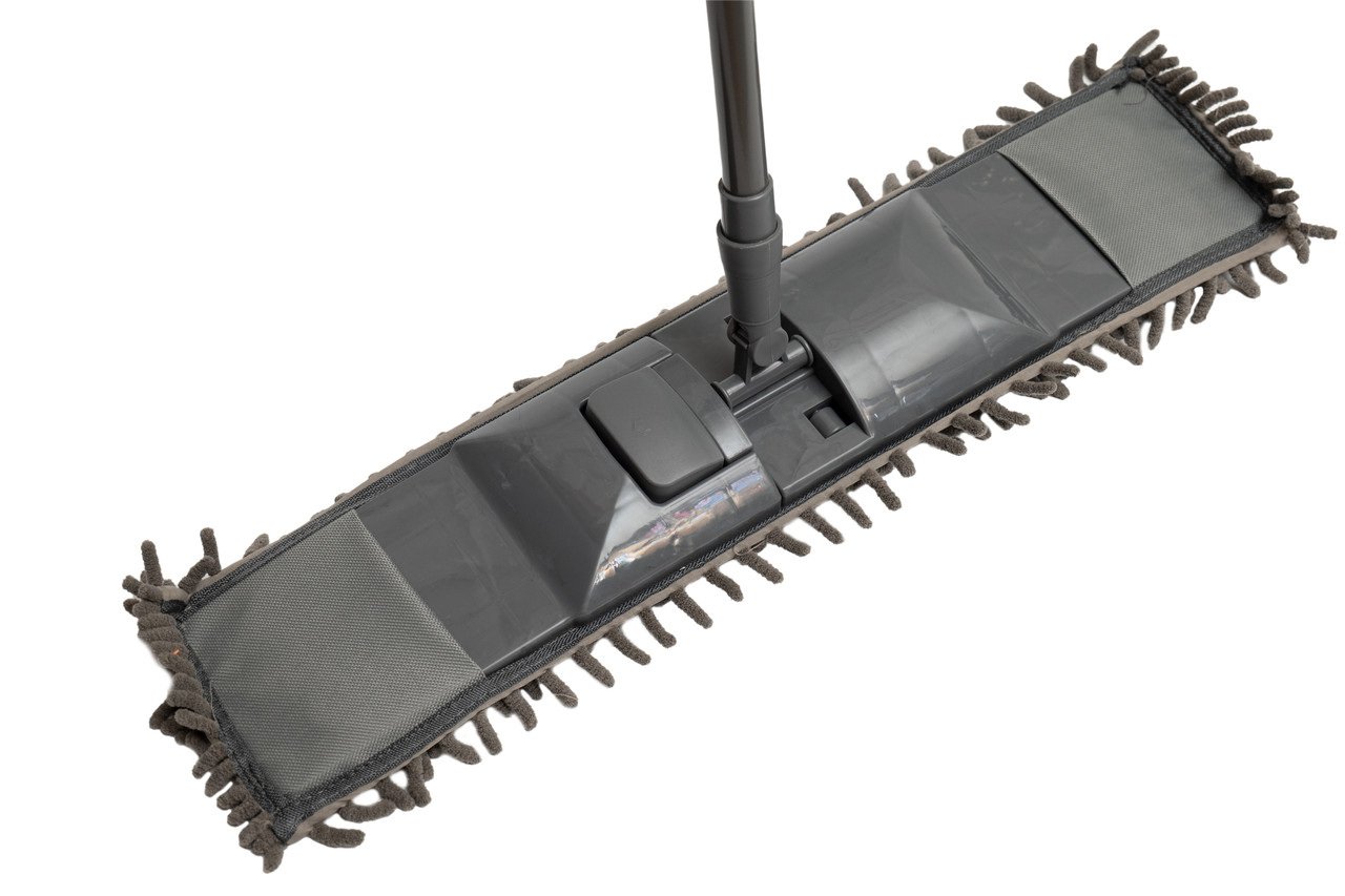 Швабра для пола "Kornel" KL-48\60B серая - это универсальная швабра предназначена как для влажной так и сухой уборки изразца, линолеума, ламината, паркета от разного рода загрязнений. Телескопическая металлическая ручка удлиняет швабру на расстояние от 75 до 128 см, чтобы обеспечить удобное использование. Швабра изготовлена ​​из достаточно прочного металла и пластика, что обеспечивает простоту и надежность в эксплуатации. Подвижная насадка швабры размером 58х12 см позволяет проникать в труднодоступные места, а насадка из мягкой микрофибры прекрасно убирает грязь, не оставляя одновременно разводов. Очень удобна и надежна в использовании.