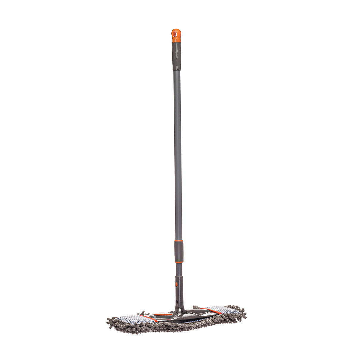 Швабра для пола "KORNEL" HY 0181А - это универсальная швабра предназначенная как для влажной так и сухой уборки плитки, линолеума, ламината, паркета от разного рода загрязнений.  Телескопическая металлическая ручка удлиняет швабру на высоту от 90 до 135 см, чтобы обеспечить удобное использование. Швабра изготовлена из достаточно прочного металла и пластика, что обеспечивает простоту и надежность в эксплуатации. Подвижная насадка швабры размером 40х12 см позволяет проникать в труднодоступные места, а насадка из мягкой микрофибры прекрасно убирает грязь, не оставляя одновременно разводов. Очень удобная и надежная в использовании.