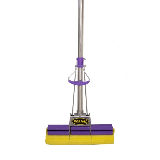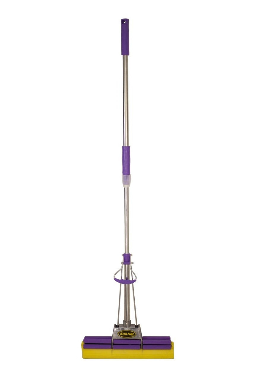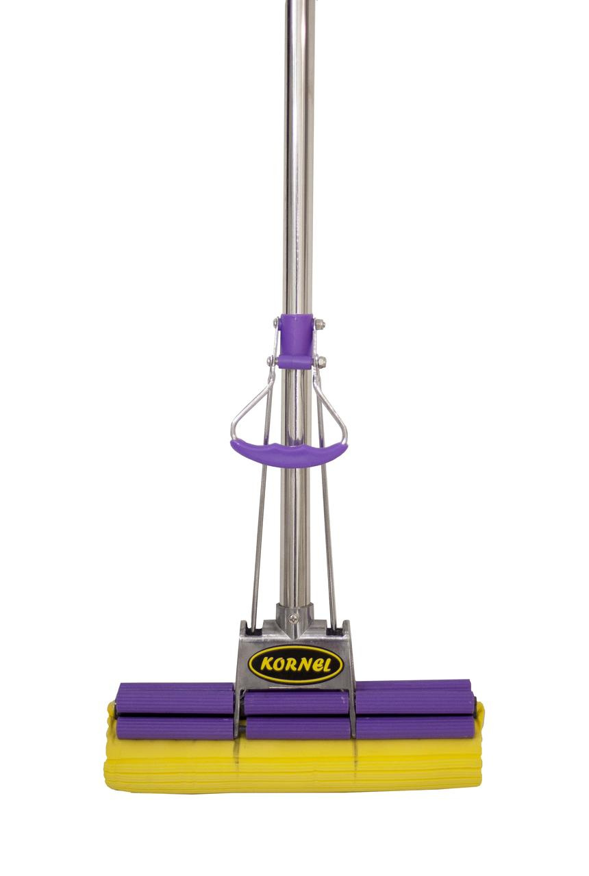 Швабра для уборки "KORNEL" роликовая с двойным отжимом  27 см - предназначена для мытья кафеля, линолеума, ламината, паркета, а так же чистки и мойки ковров от шерсти животных и разного рода загрязнений. Она очень удобна в использовании, благодаря специальному отжиму, ваши руки всегда остаются сухими и чистыми во время уборки. Ручка и основание швабры изготовлены из высококачественной нержавеющей стали, длинна ручки регулируемая от 100  до 130 см. Губка изготовлена из PVA - мелкопористого материала, который впитывает большое количество воды и создает вакуумный эффект. Ширина губки - 27 см. Долговечная ребристая поверхность губки способствует удалению труднодоступных загрязнений. Благодаря эффекту "мокрой губки" сразу готова к использованию .Производитель Китай.