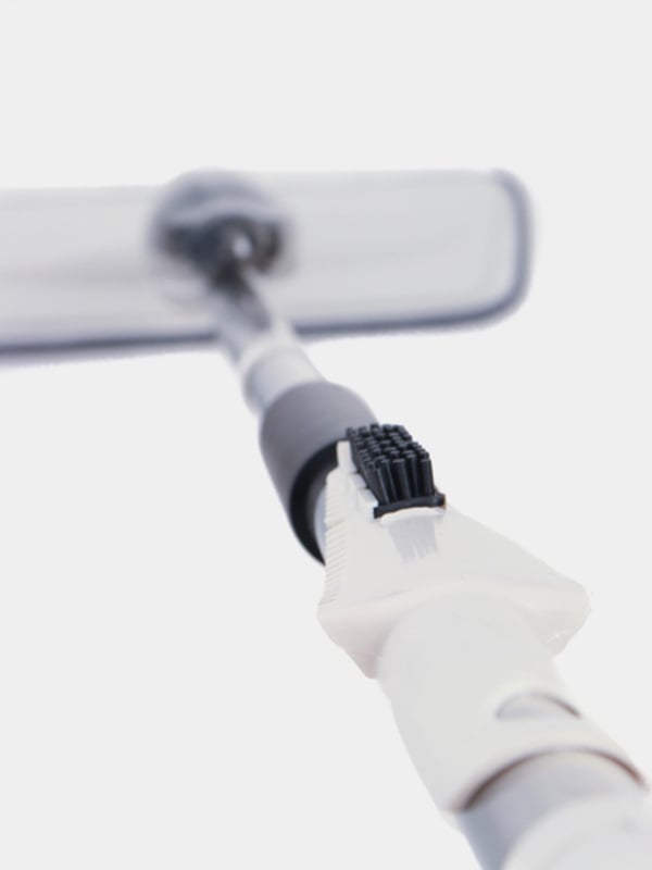 Резервуар на 350 мл достаточно лёгок и одновременно достаточно вместителен, чтобы не требовать частого пополнения. Поскольку микрофибровые насадки чрезвычайно эффективно вбирают грязь, для уборки больших поверхностей шваброй хватает совсем небольшого количества воды или смеси воды/моющего средства. Для работы швабры используются съёмные микрофибровые насадки-подушечки, которые легко скользят и отсоединяются для мытья. Супермягкие поглощающие подушечки легко впитывают влагу, грязь и пыль, чтобы оставить чистый пол, который быстро высыхает без разводов.