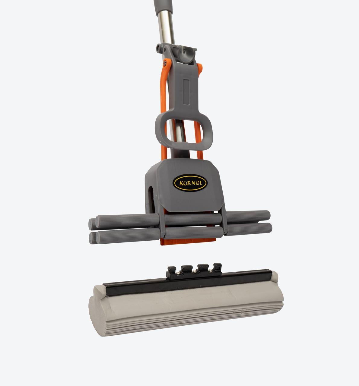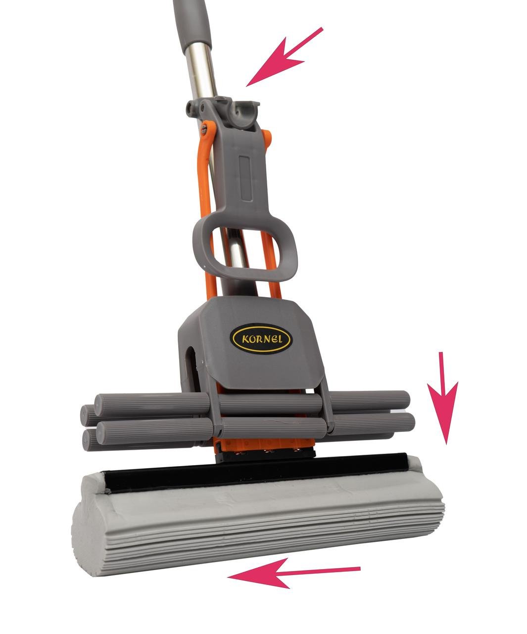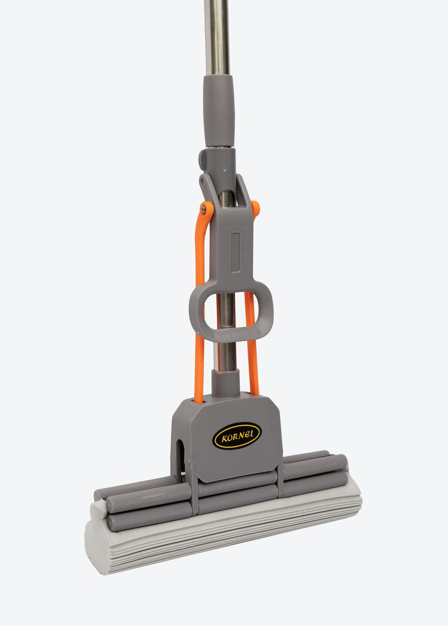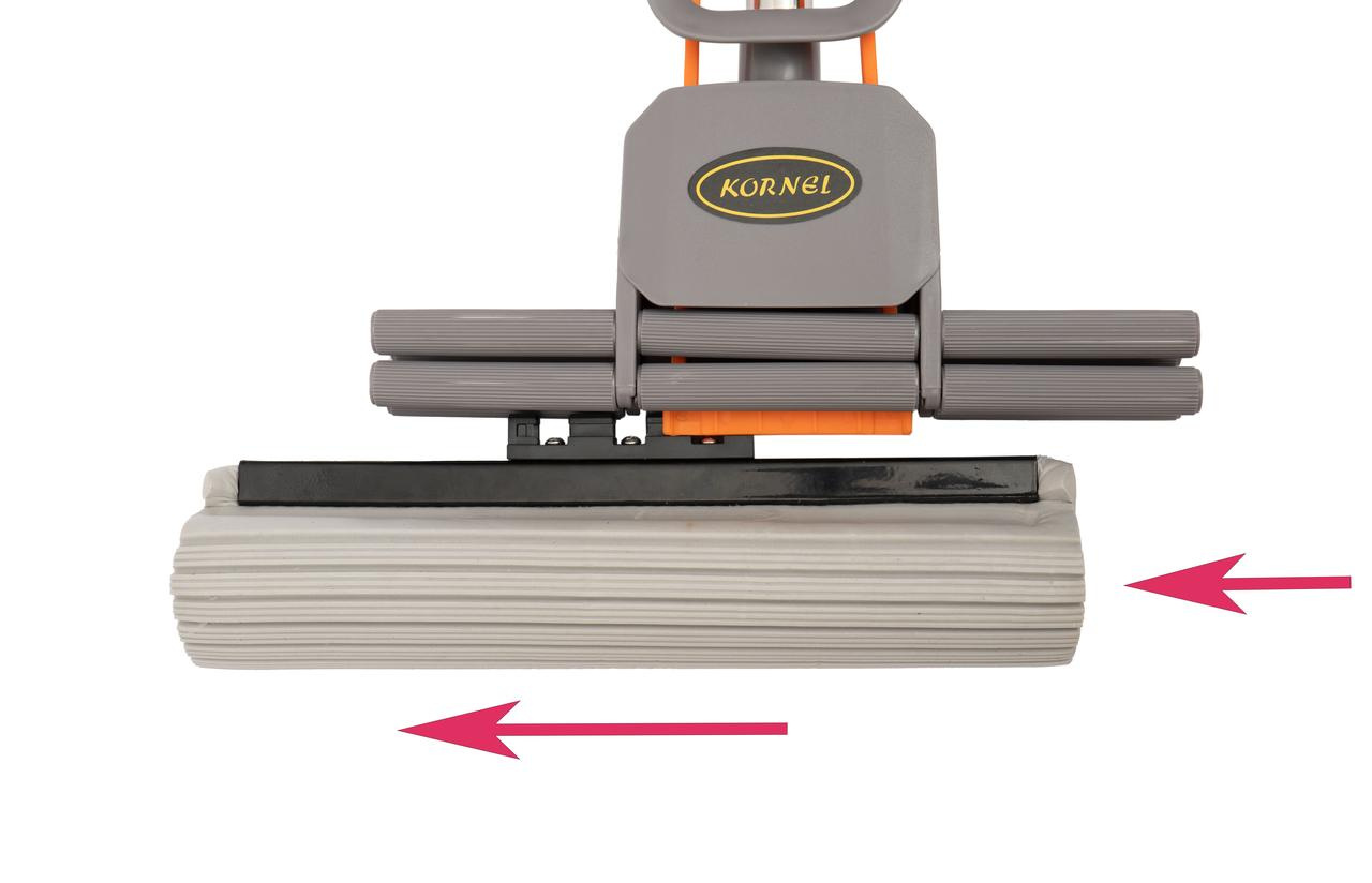 Швабра для уборки роликовая телескопическая с двойным отжимом 27см. "KORNEL"( со специальным механизмом и креплением, благодаря которым замена губки происходит очень легко и просто - без перекручивания шурупов) Предназначена для мытья кафеля, линолеума, ламината, паркета, а так же чистки и мытья ковров от шерсти животных и разного рода загрязнений. Она очень удобна в использовании, благодаря специальному отжиму ваши руки всегда остаются сухими и чистыми во время уборки. Швабра изготовлена из достаточно прочного металла и пластика, что обеспечивает простоту и надежность в эксплуатации. Длина ручки регулируемая от 100 до 130 см. Губка изготовлена из PVA - мелкопористого материала, который впитывает большое количество воды и создает вакуумный эффект. Ширина губки – 27 см. Долговечная ребристая поверхность губки способствует удалению труднодоступных загрязнений. Благодаря эффекту "мокрой губки" сразу готова к использованию.