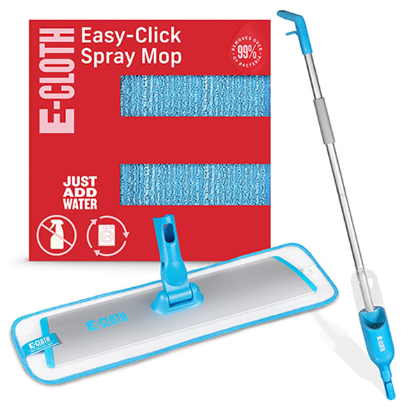 Швабра E-Cloth Easy-Click Aqua Spray Mop удаляет жир, пыль, грязь и более 99% бактерий с твердых поверхностей. Дерево, плитка или ламинат, очистка и защита ваших инвестиций с помощью только воды. Без повторных походок к раковине или ведру с водой. Вытирает без полос и разводов.  Эта швабра облегчает выполнение сложных задач благодаря многоразовому резервуару для воды и легкой алюминиевой ручке. Кроме того, она совместима с любым мопом E-Cloth Easy-Click. Нажмите на курок, чтобы разбрызгать воду, а остальное сделает насадка швабры из микрофибры. Быстрые застежки-липучки позволяют легко прикрепить и снять моп для швабры. Не нужно добавлять дополнительные чистящие средства, используйте только воду – чтобы не беспокоиться о ползающих малышах и любознательных домашних животных. В отличие от одноразовых салфеток, наш моп с уникальной микрофиброй многоразового применения.