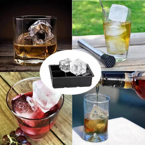 4 ячейки: Имеет 4 просторные ячейки для изготовления больших кубиков льда, медленно тающих, поддерживая ваши напитки холодными дольше.