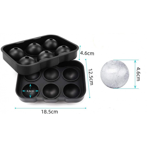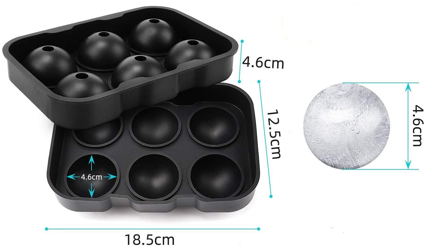 Форма: Имеет 6 ячейки для создания ледовых шаров. Ледовые шары медленно тают, не разбавляя напитки водой, что делает их идеальными для охлаждения разнообразных напитков.