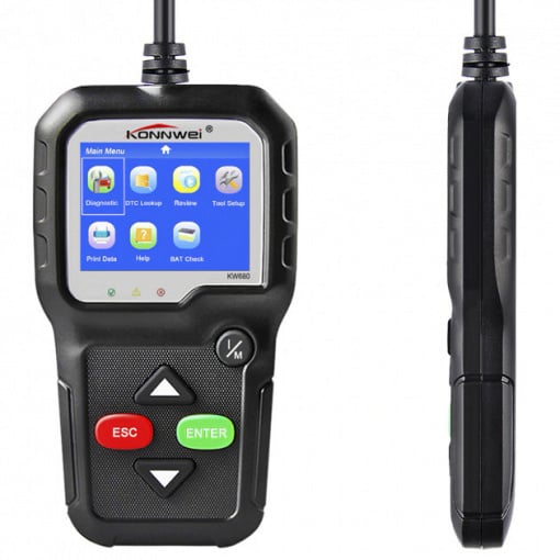 Современная электроника, установленная на автомобилях, призвана контролировать основные и вспомогательные узлы и системы транспортного средства. Ею насыщены современные модели автомобилей. Однако горящий сигнал «проверить двигатель» не всегда говорит о реальной неисправности, очень часто проблема решается стиранием ошибочной информации о сбое.Сканеры, типа KW680, оперативно проверяют системы, обнаруживают и исправляют большинство сбоев. Они могут подсказать о необходимости обратиться к специалистам обоснованно, причем владелец будет знать о характере сбоя и месте его проявления.Компактный и удобный диагностический сканер KW680 не требует сотрудничества с подсоединенным с помощью Bluetooth или Wi-Fi гаджета. Данная модель может работать с автомобилями, бортовое напряжение которых 12V.Функциональность и легкость в работе дают возможность выполнять операции быстрее и сэкономить время и средства на диагностику и ремонт. Наряду с протоколом OBD2, поддерживается прибором ряд протоколов, таких, как CAN, J1850PWM, J1850VPW, ISO9141 и другие. Настраивает отображение данных и может иметь графическое их изображение.При сбое автомобиля, светом сигнализирует индикатор MIL, а модуль управления силовым агрегатом PSM сохраняет в памяти данные. Код сбоя читается из PSM через сканер и может предложить метод ее устранения.Предлагаемый прибор имеет целый ряд особенностей, среди которых: простота использования, удаление ложных и временных неисправностей в ЭБУ, удаление кода, выключение индикатора. Чтение информации датчиков, стоп-кадров, служащих для большего понимания проблем. Поддерживает русский язык и имеет целый ряд других преимуществ.Устройство позволяет распечатывать данные через ПК посредством USB. Записывает данные в резервную память для ознакомления вне автомобиля с помощью АКБ сканера.